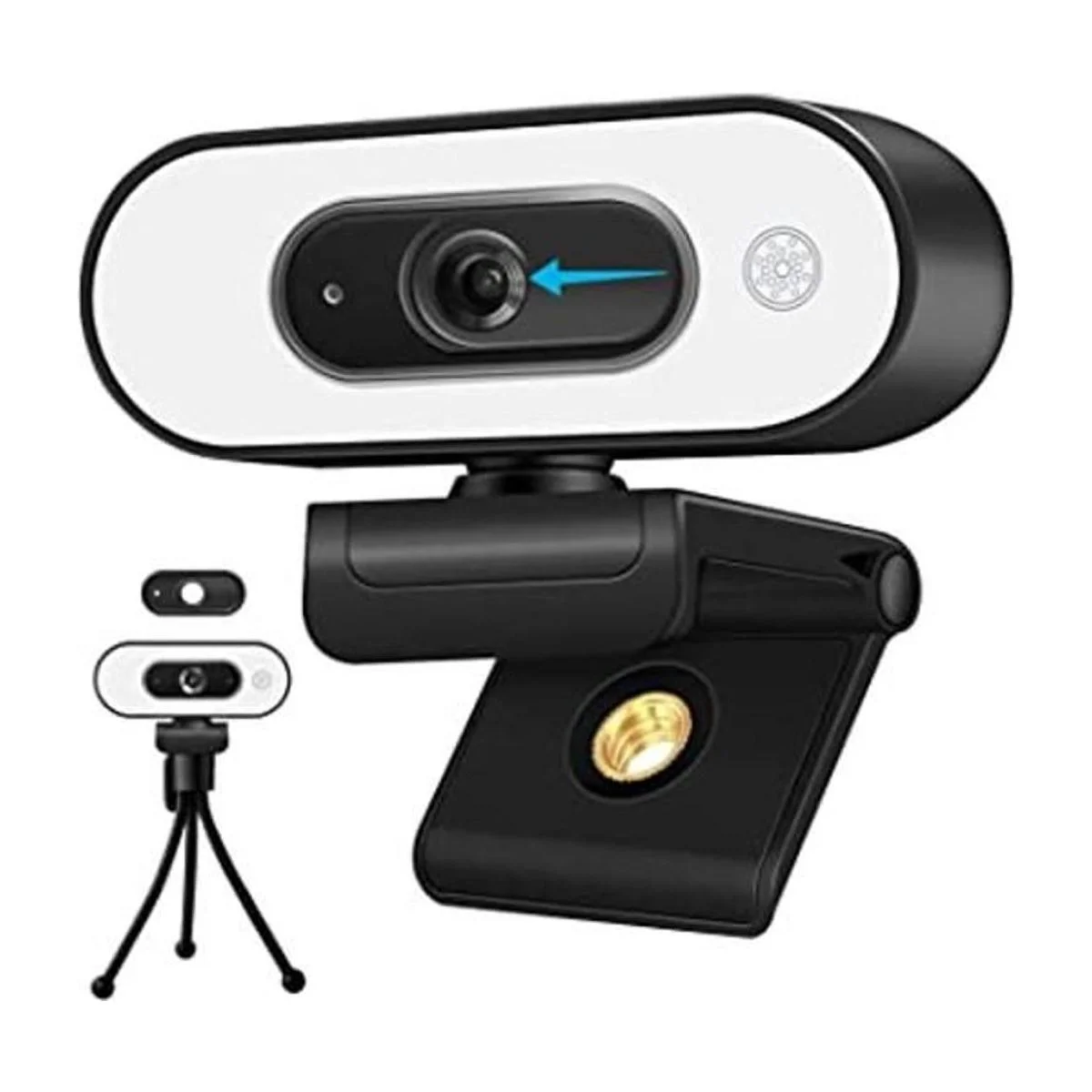 Cámara web 1080P con anillo de luz Cámara de anillo para portátil con micrófono de 3 niveles de brillo, cámara web de transmisión con trípode, cámara de transmisión Plug and Play con luz para laptop, PC, Mac, Zoom, Skype, Facetime