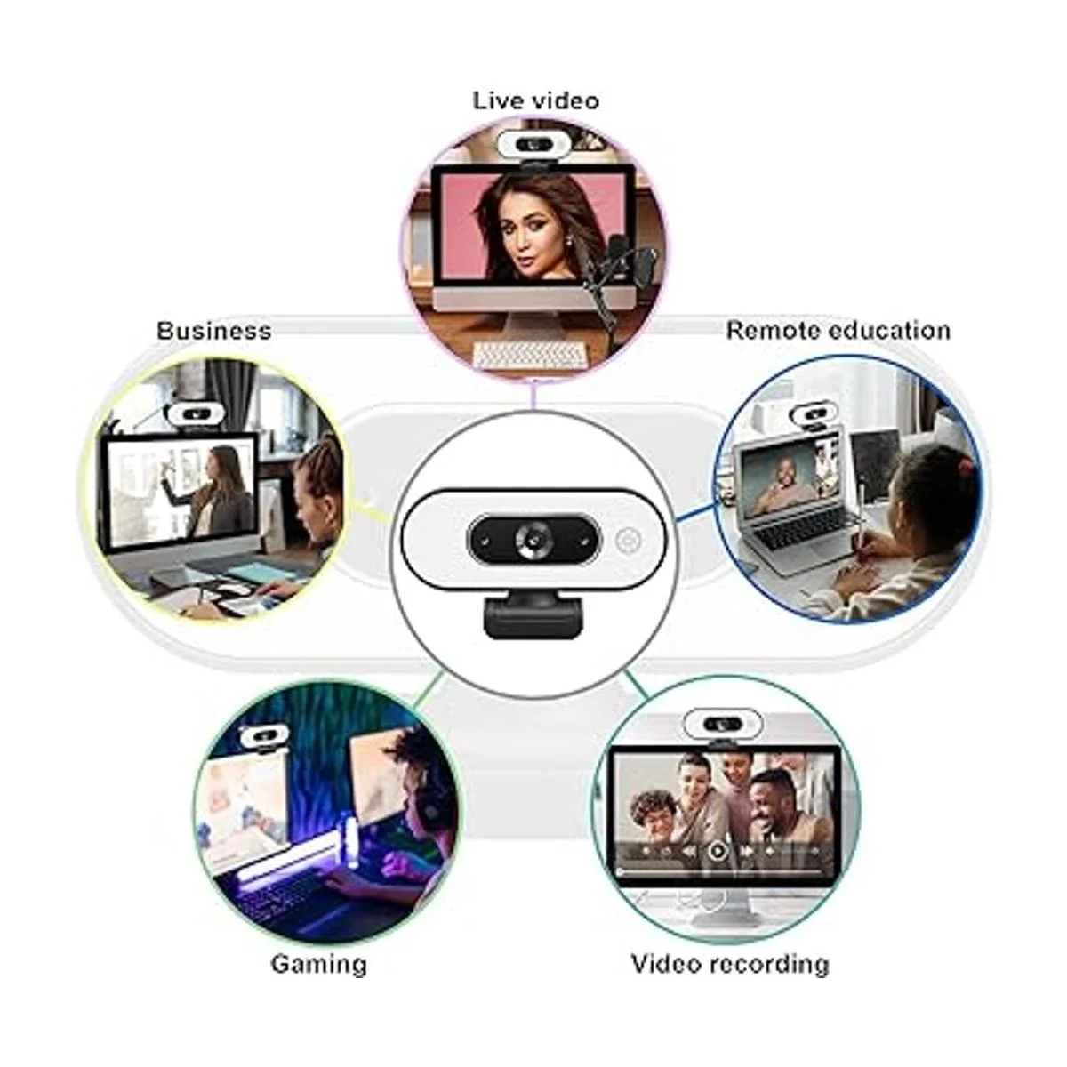 Enfoque fijo inteligente y cubierta de protección de privacidad La cámara web con anillo de luz tiene una función de enfoque fijo inteligente, por lo que no hay necesidad de preocuparse por ajustar el enfoque. Siempre encontrará automáticamente la mejor distancia focal para su escena. Esta cámara de transmisión también está equipada con un escudo de privacidad. Simplemente coloca la cubierta de protección de privacidad en la lente y desliza hacia la derecha para bloquear la cámara. La cámara para portátil protege tu seguridad en cualquier momento cuando no la estés utilizando.