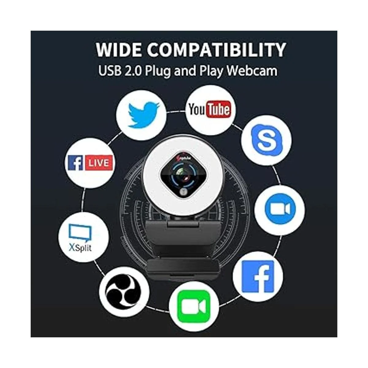 Cámara web de transmisión con luz Cámara de computadora HD 1080P de enfoque automático con micrófono, cámara USB con zoom digital para Xbox, PC, escritorio, laptop, juegos, videollamadas