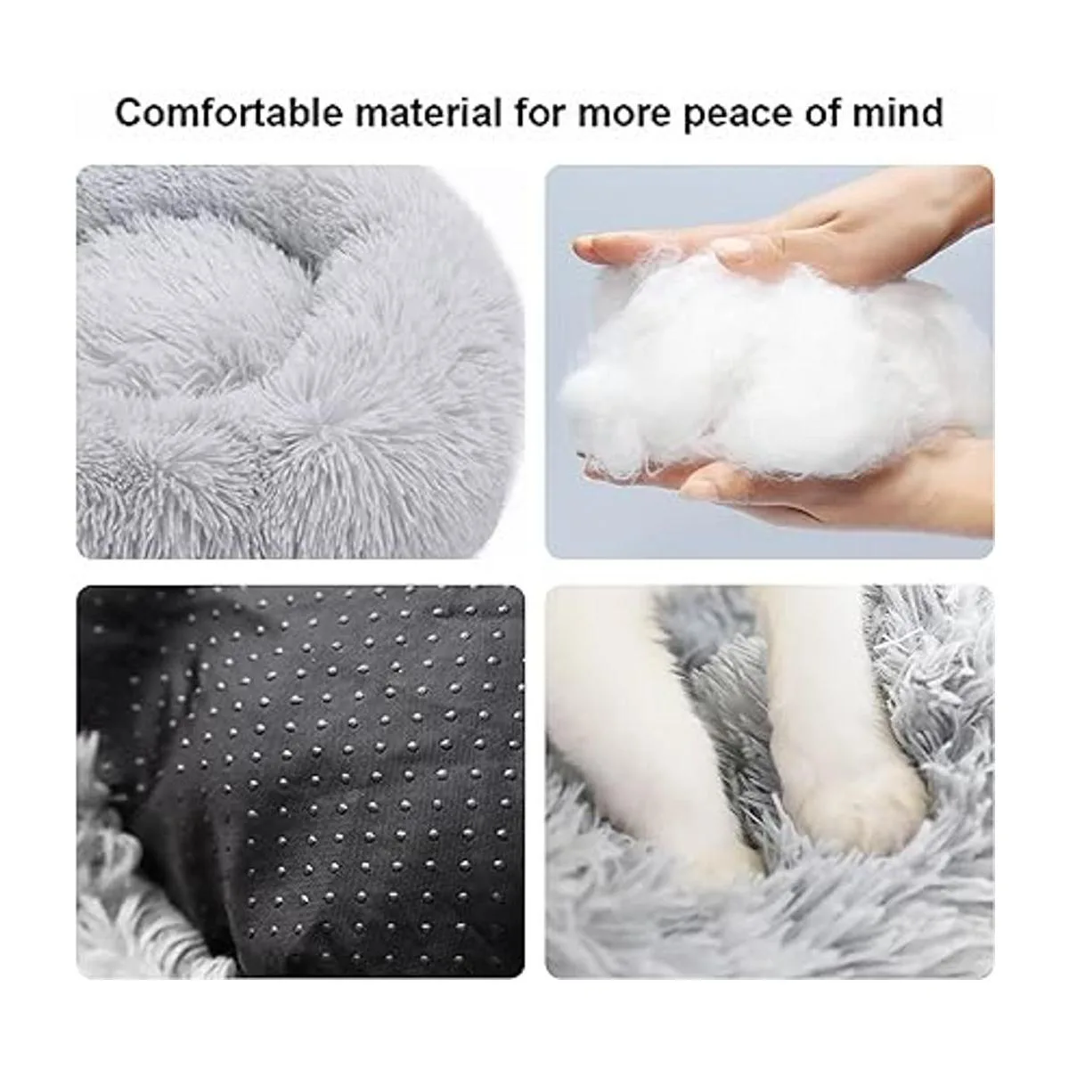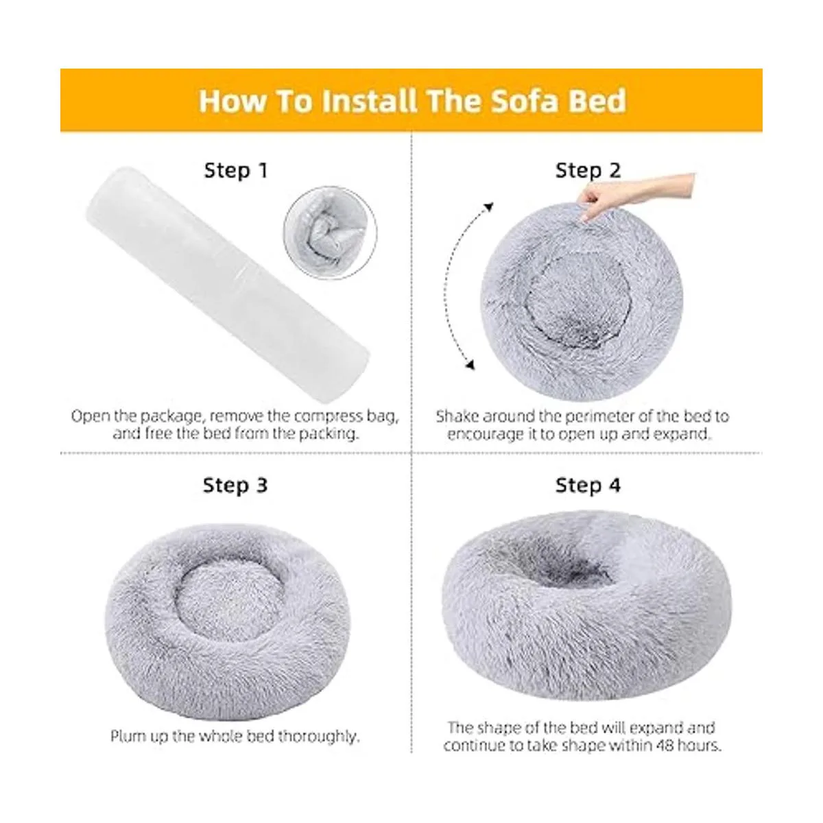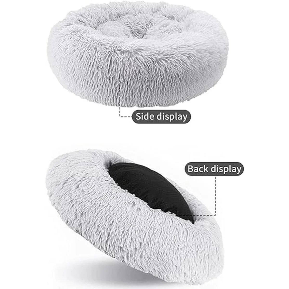 Diseño para un sueño acogedor: las camas para gatos o perros son el diseño circular de dona. Los bordes elevados crean una sensación cómoda de seguridad, mientras que proporcionan apoyo para la cabeza y el cuello para ayudar a tu gatito o cachorro a calmarse más rápido, obtén un sueño más cómodo y estable.