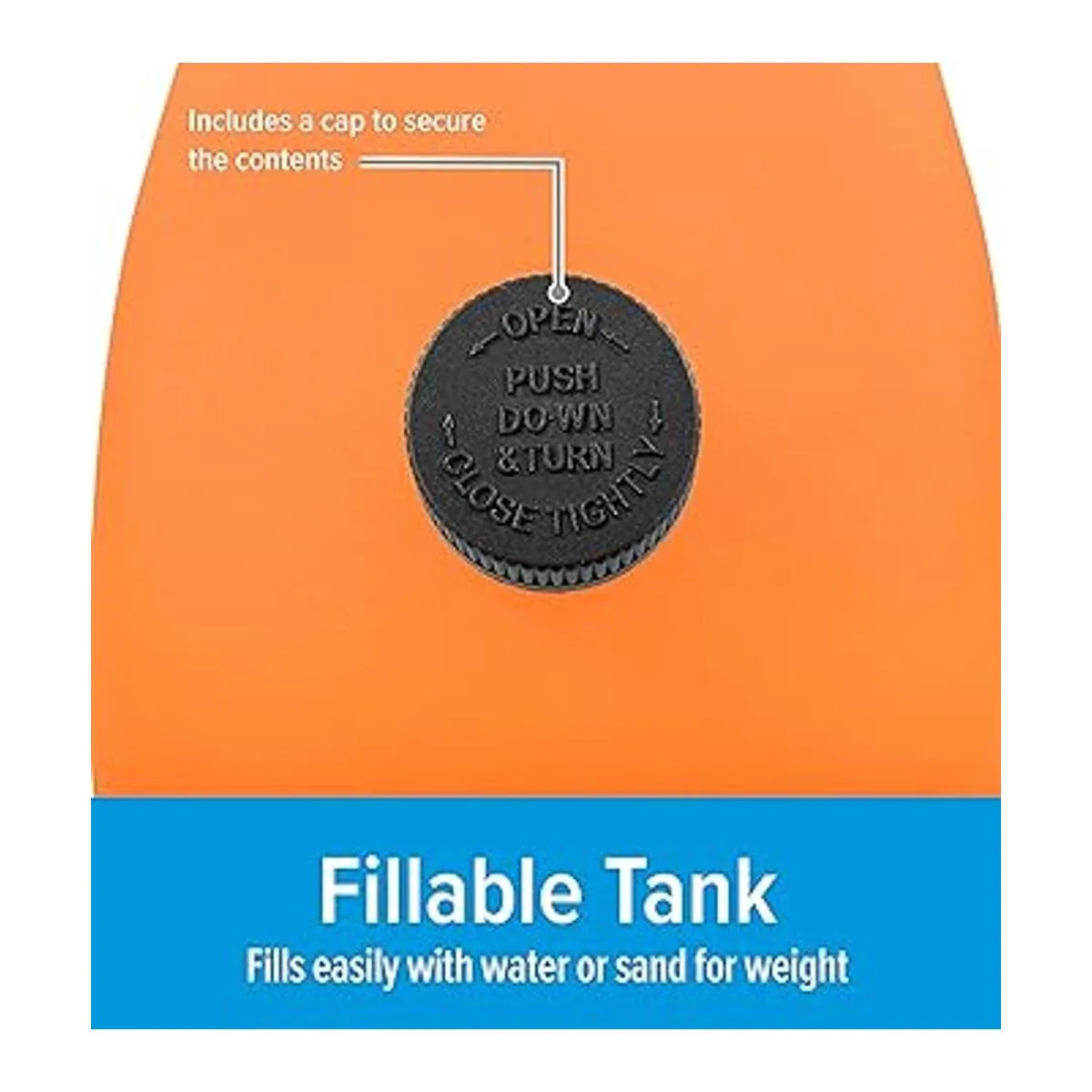 Depósito rellenable: se llena fácilmente con agua o arena para peso; incluye una tapa para asegurar el contenido