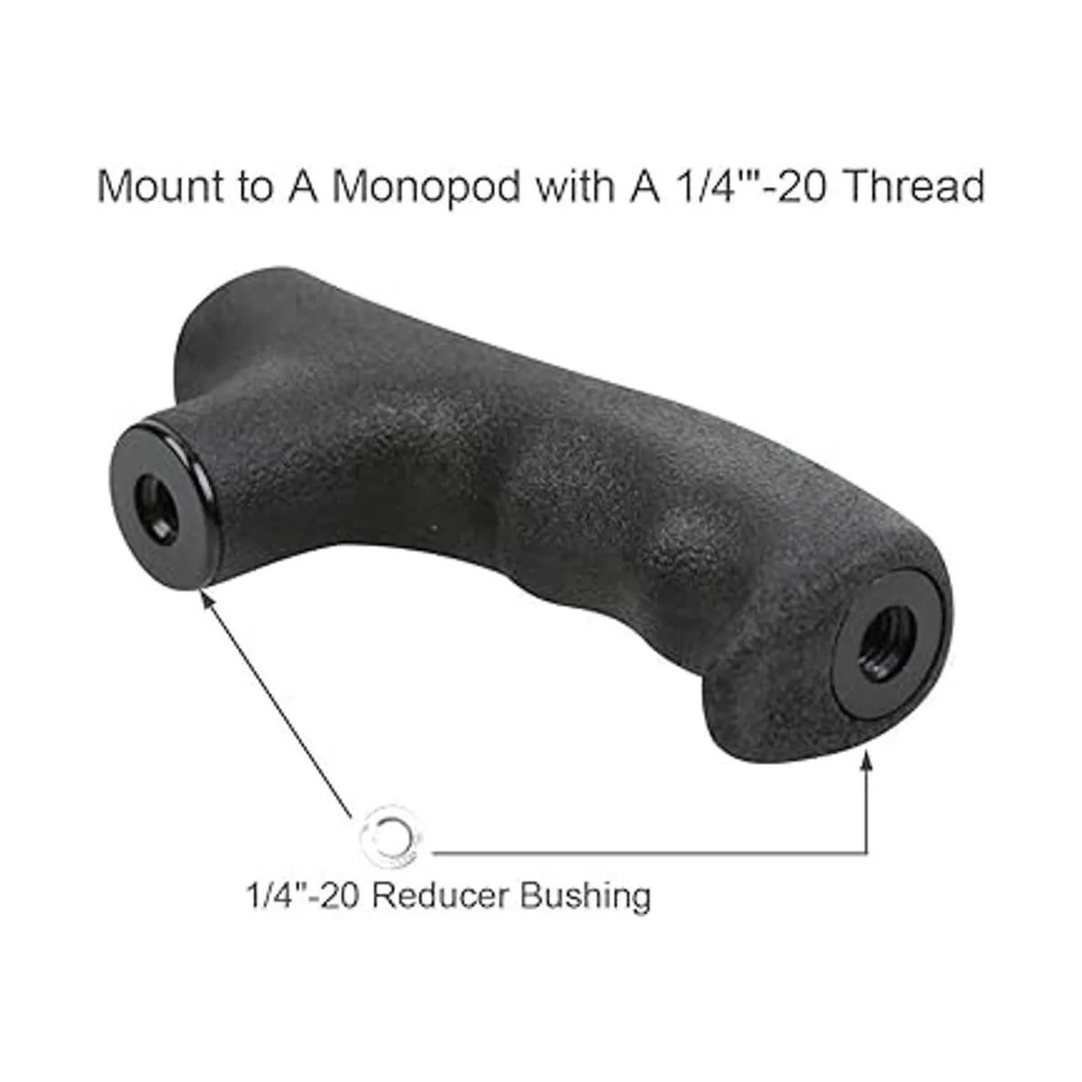 Orientación horizontal o vertical: el mango se puede montar en un monopié horizontal o verticalmente en cualquiera de los dos enchufes de 3/8 a 16 pulgadas.