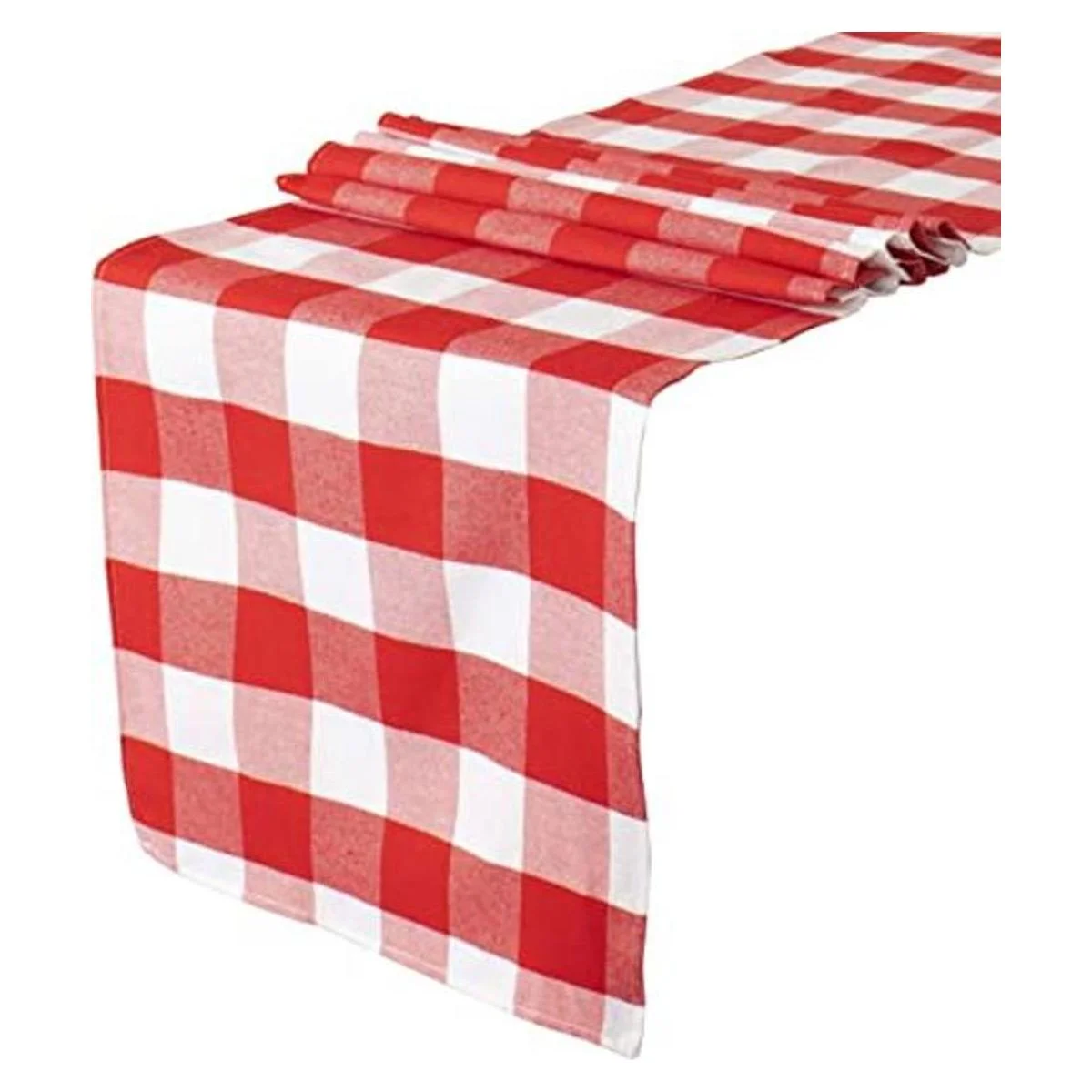 Camino de mesa a cuadros de búfalo: 1 camino de mesa de cuadros de Navidad de 13 pulgadas de ancho y 108 pulgadas de largo, rojo y blanco. Este camino de mesa a cuadros es adecuado para una mesa con capacidad para 8 a 10 personas.