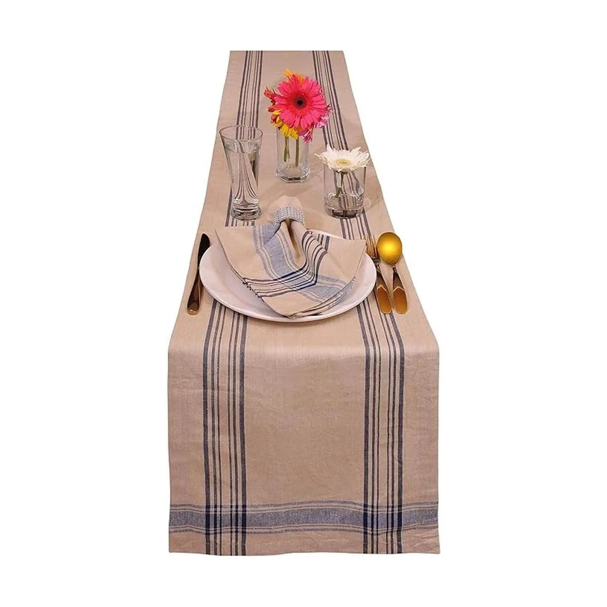 PREMIUM QUALITY Smart striped table runner is made with 100 finely milled natural cotton that is luxuriously soft, smooth to touch, and stainresistant, while colorfast pigments used to dye table cloth runner do not bleed or fade even after multiple washes Safe for machine wash