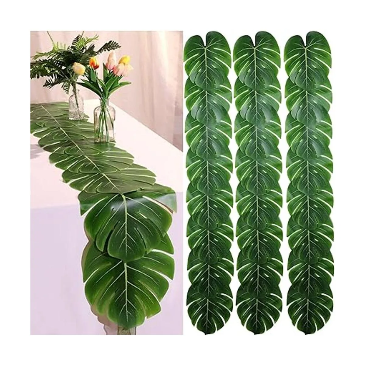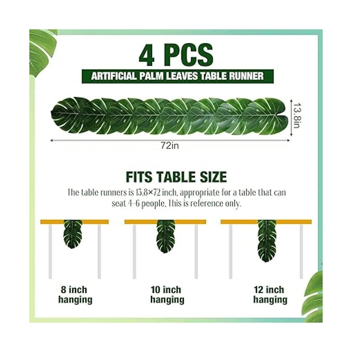 Camino de mesa artificial de hojas de palma, de 72 pulgadas de largo, hojas de plátano, mantel de hojas sintéticas para bodas, decoración de mesa de suministros de fiesta temática hawaiana Luau hoja de palma, 4 piezas