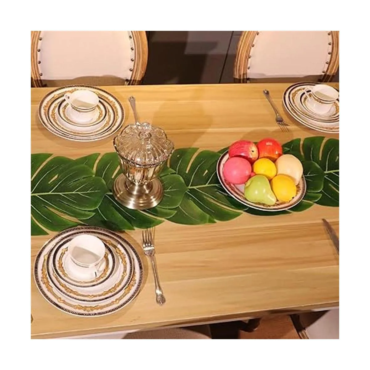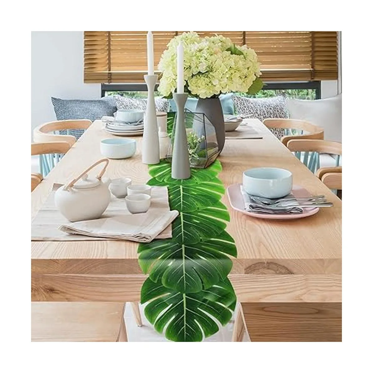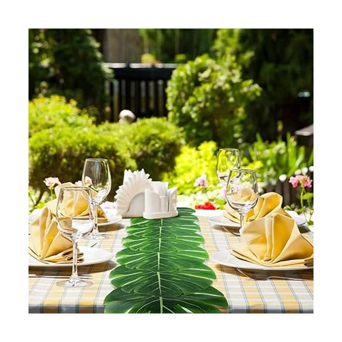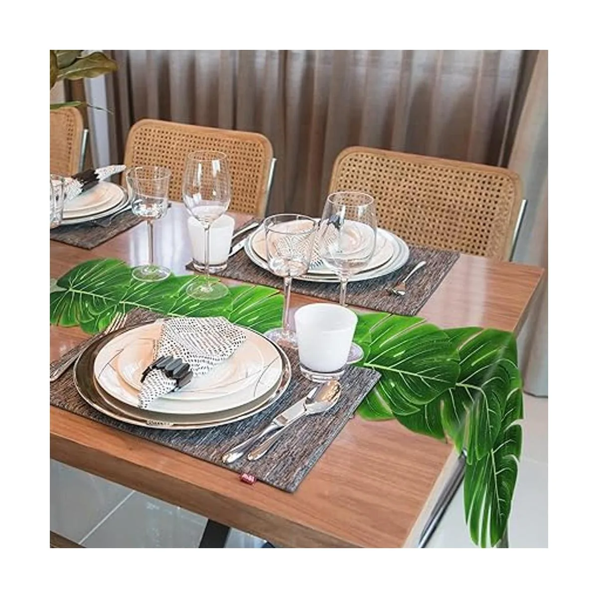 Material fiable: el mantel artificial de hoja de palma está hecho de material de tela suave y ligero, resistente y reutilizable, fácil de limpiar, y proporcionará un servicio duradero