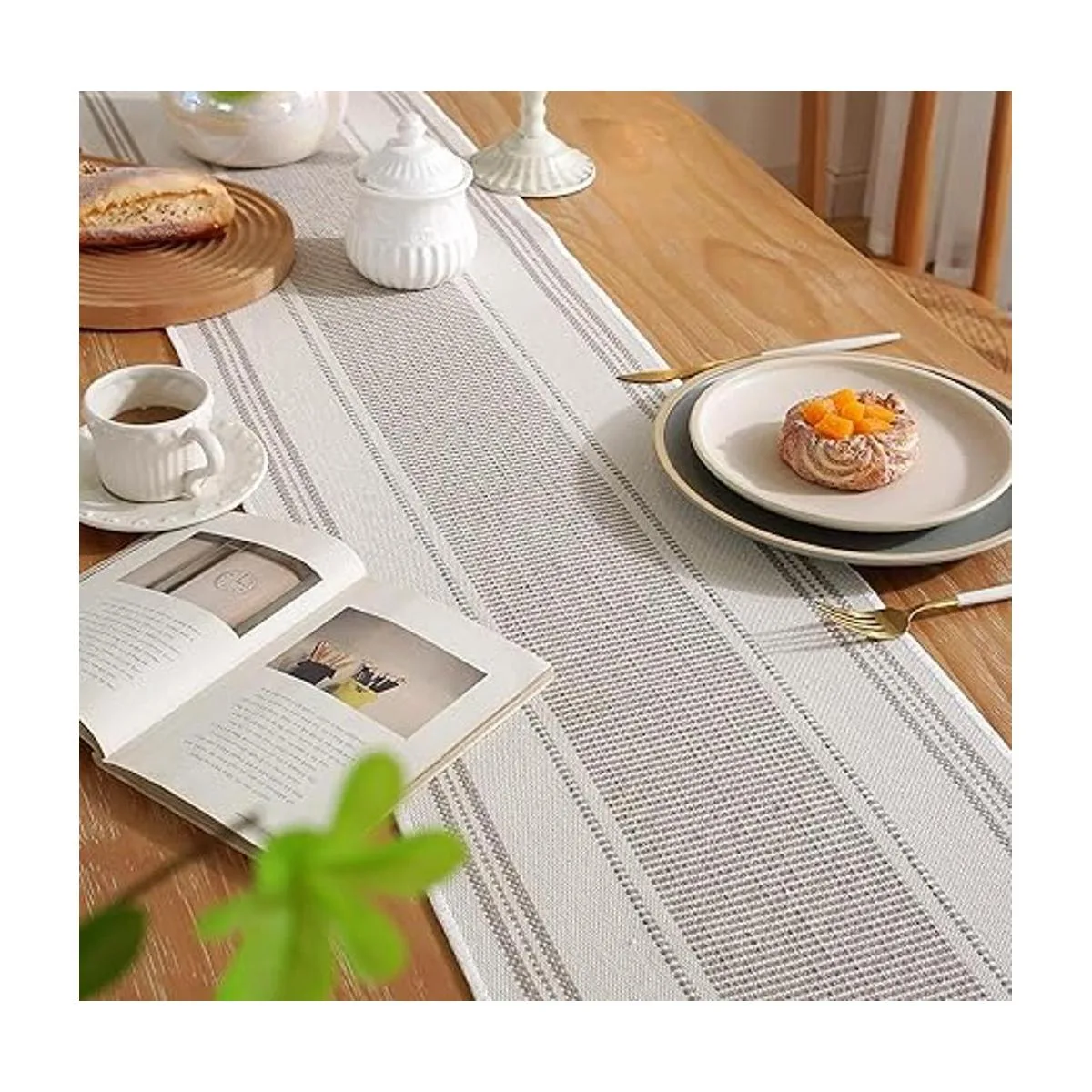 Materiales de alta calidad: la tela gruesa y de alta calidad puede proteger tu mesa de arañazos, derrames y desorden perfectamente, ambos lados son hermosos y disponibles. El patrón simple de rayas es clásico y moderno. Sin arrugas, elegante.