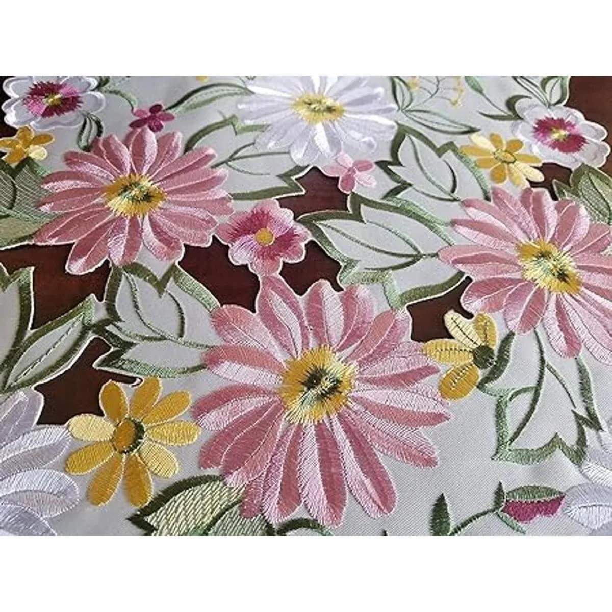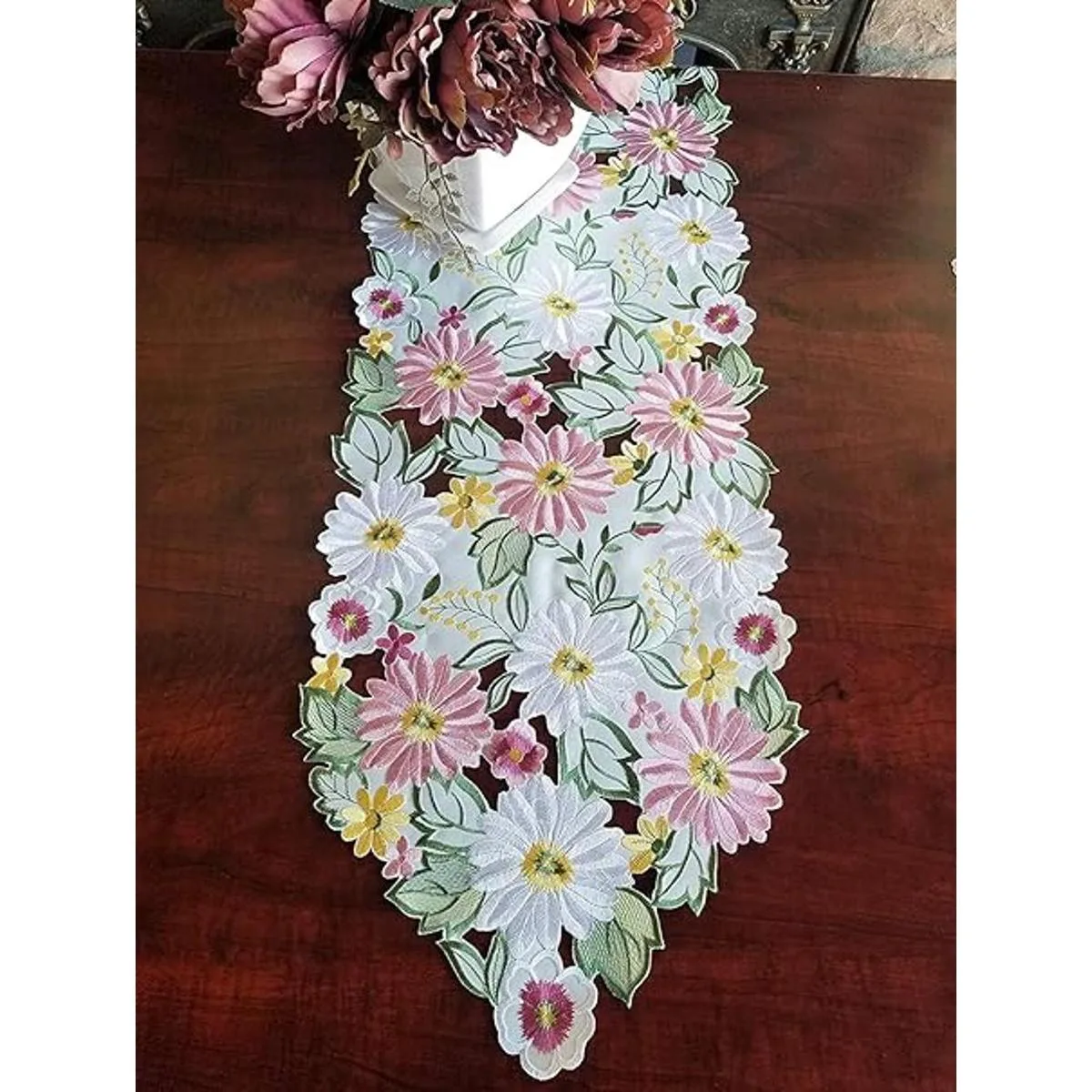Camino de mesa de primavera de 13 x 34 pulgadas, apliques florales bordados, margaritas florales, decoración de mesa para el hogar, cocina, comedor