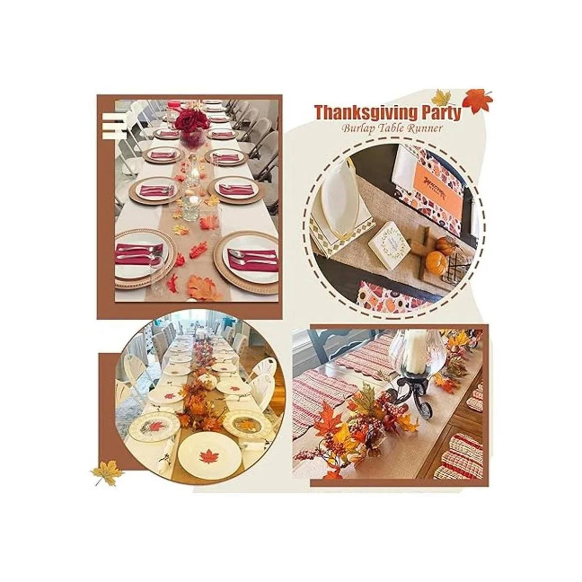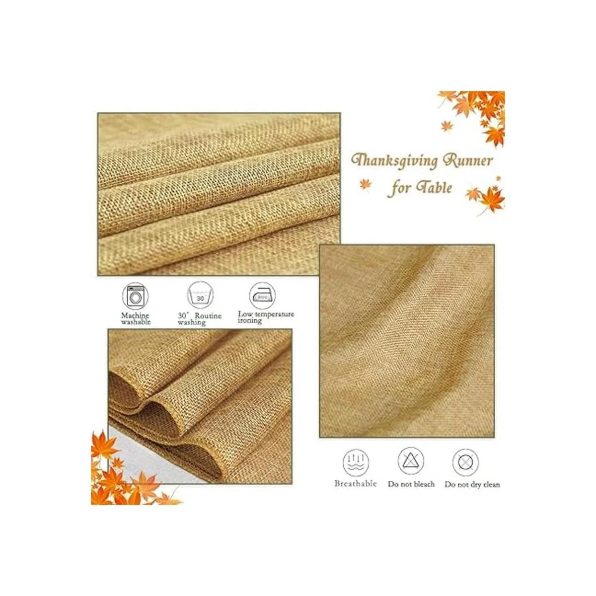 Camino de Acción de Gracias para mesa: este camino de mesa está hecho de arpillera 100 natural, duradero y fácil de cuidar. Acabado fino. Bordes exquisitos, no se sueltan fácilmente.