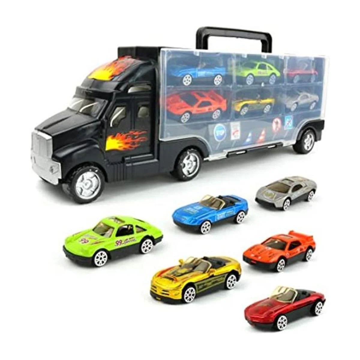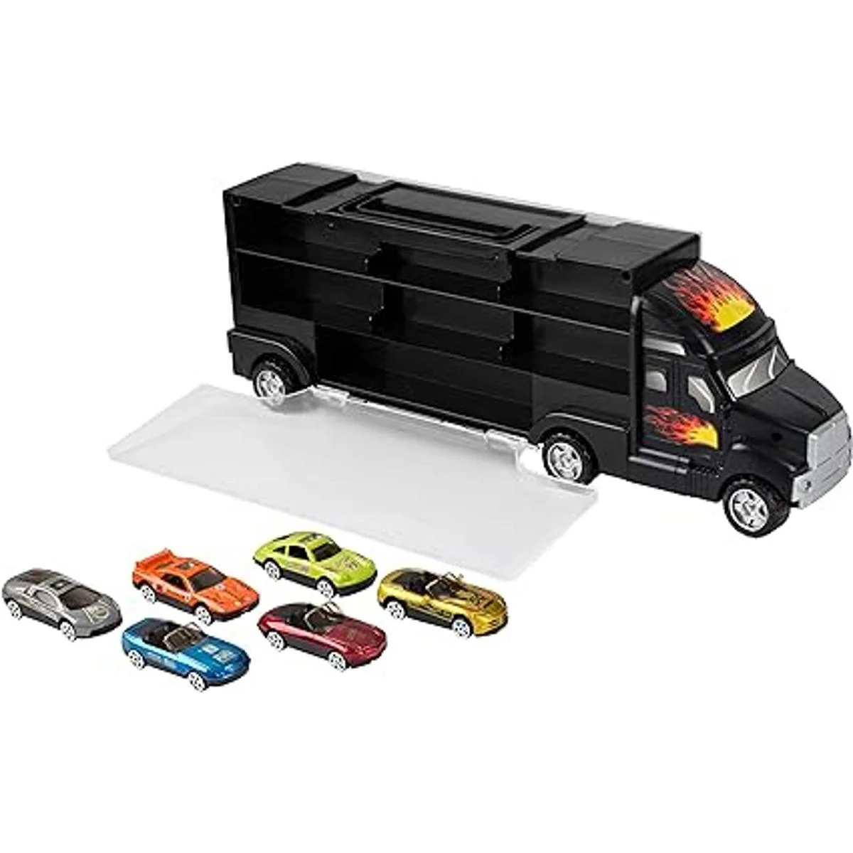 Camión de transporte Carrier, con 6 elegantes de coches carreras, de metal, con funda de transporte