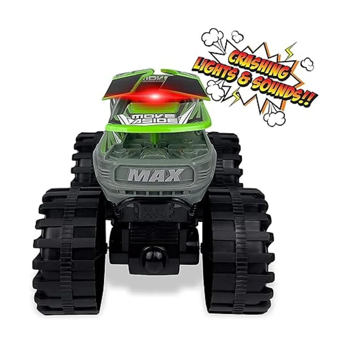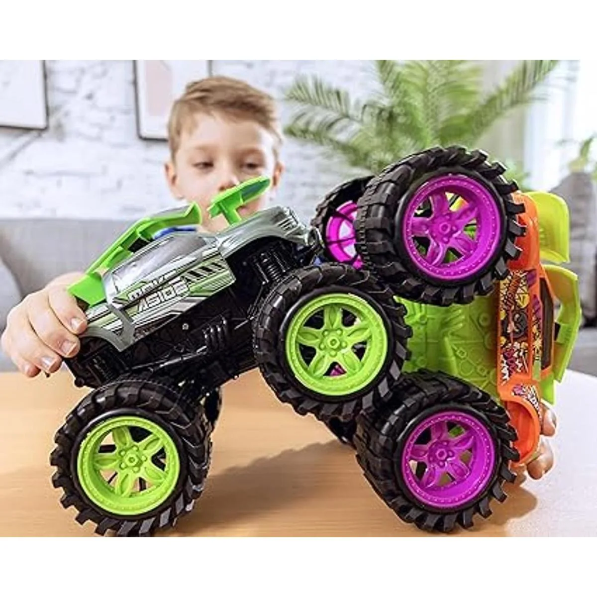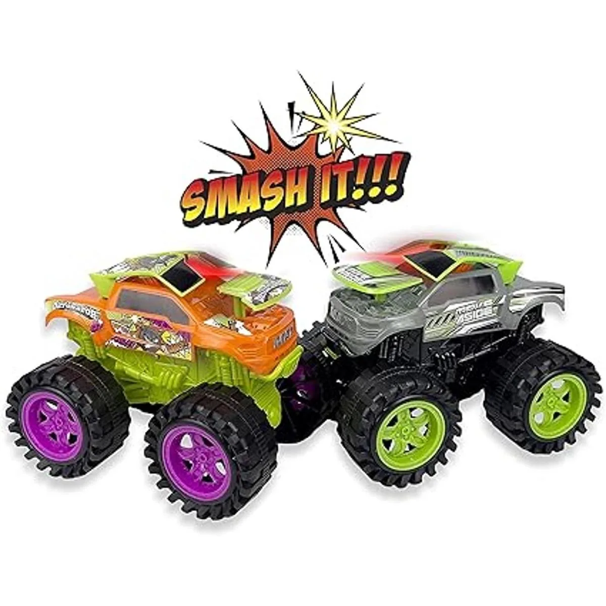 Smash it: las ruedas delanteras gigantes activan la acción de choque El camión monstruo explota cuando las ruedas delanteras entran en contacto con otro camión monstruo o cualquier cosa que se interponga en su camino