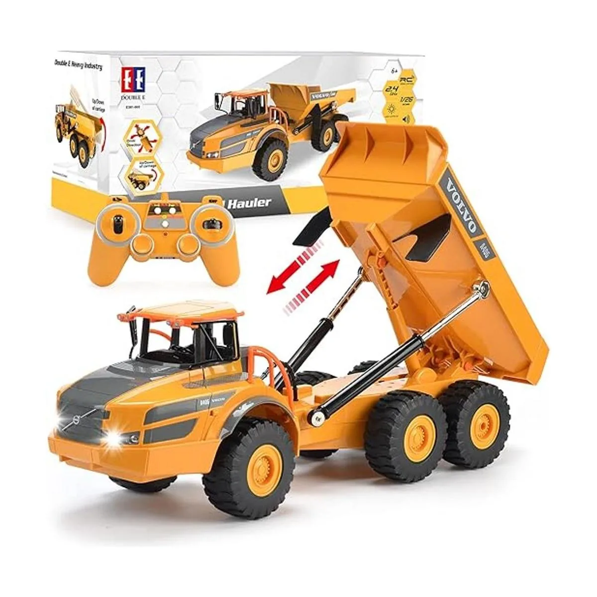 Transportador articulado con autorización de VOLVO: nos dedicamos a producir juguetes de alta calidad y seguros para niños, y nuestra calidad tiene la aprobación de VOLVO. El juguete profesional articulado DOUBLE E es la réplica más realista de un camión volcador modelo A406.
