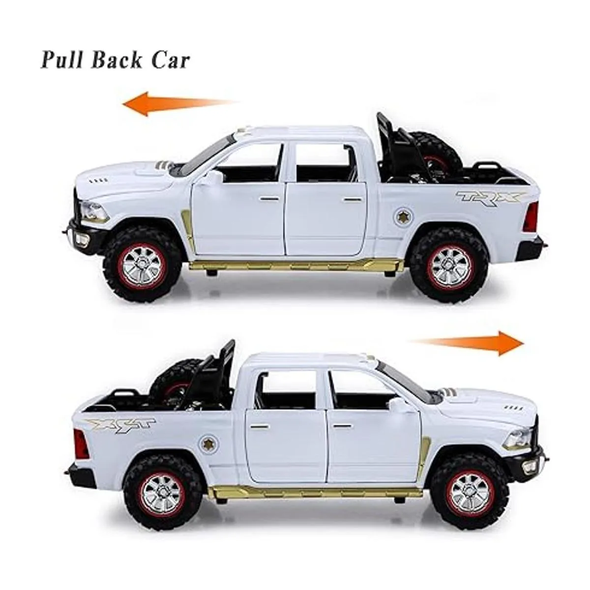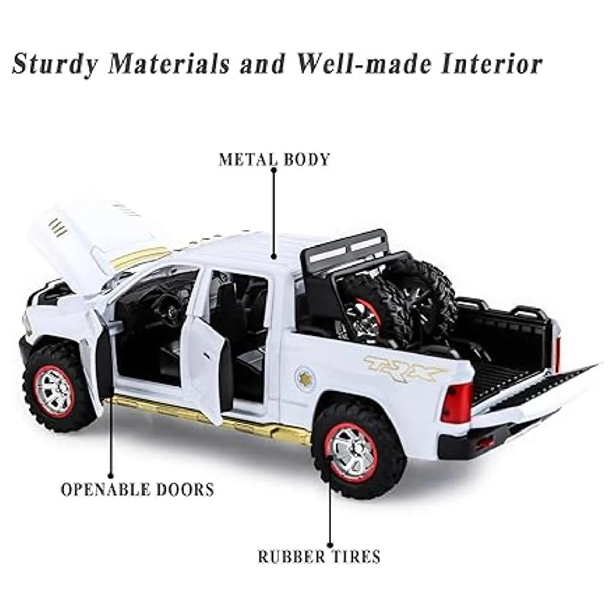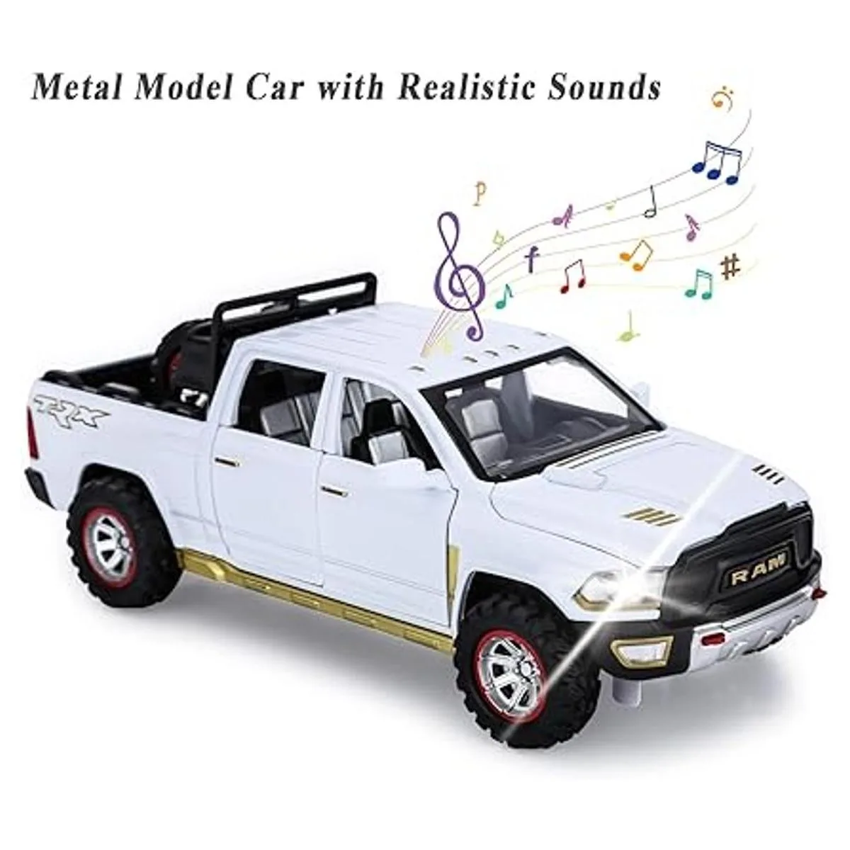 Camiones de juguete para niños RAM TRX 1500 de metal fundido a presión con luz y sonido para niños de 3 a 7 años blanco