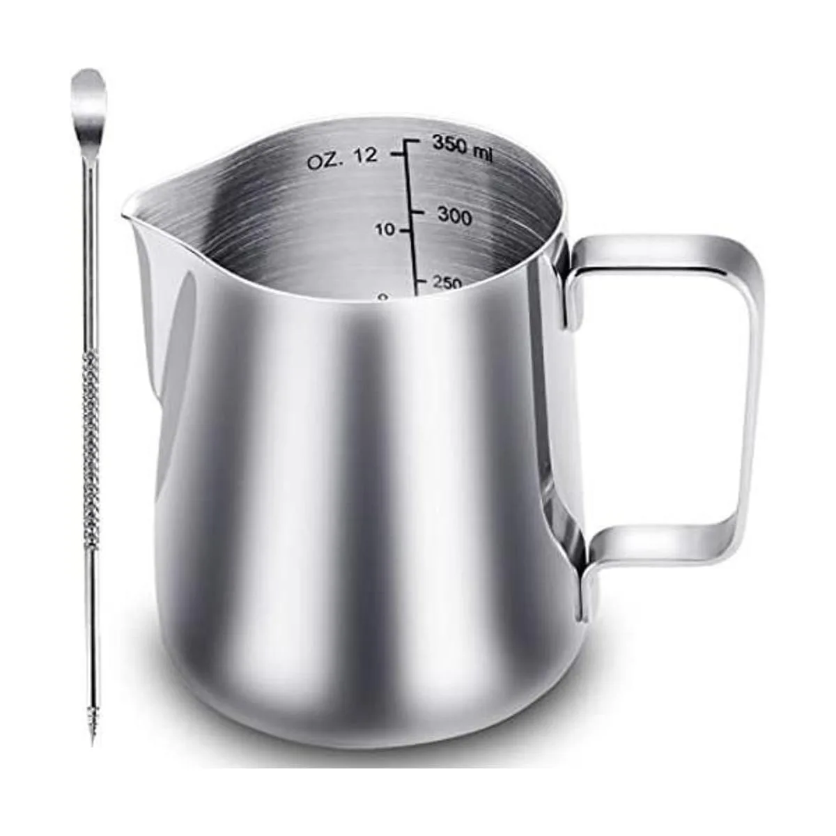 CAMKYDE Jarra de acero inoxidable para espumar de leche de 12 oz, jarra de café con pluma para decoración para cafeteras de espresso, capuchino y arte latte