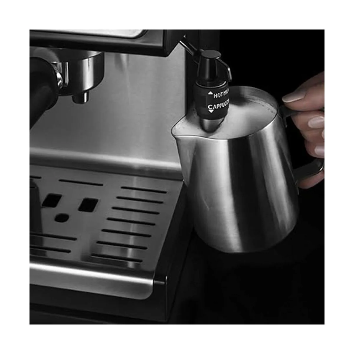 Para un perfecto arte con latte, la magia está en la boquilla. Diseño de boquilla de águila sin goteo, puedes centrarte completamente en el arte del café sin preocuparte por goteos. El recipiente de desviación hace que la leche fluya más suavemente, te ayuda a hacer el arte con leche más delicado