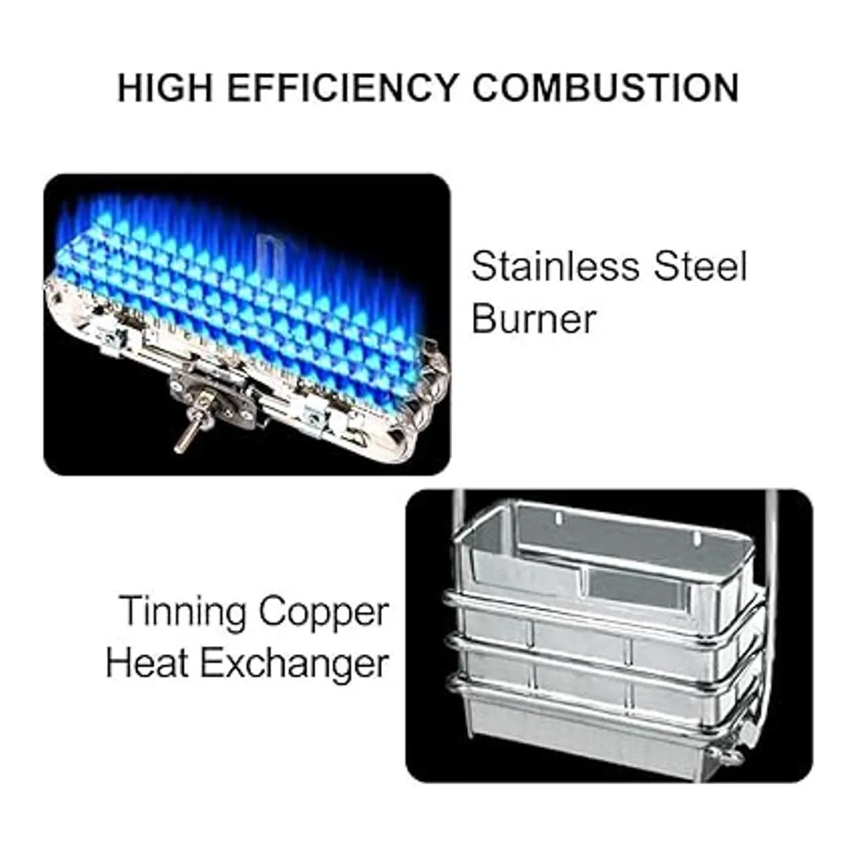 Arranque de presión de agua de 3.0 PSI: equipado con un sensor magnético de flujo de agua, el calentador de agua sin tanque se puede aplicar ampliamente para zonas rurales, caravanas y barcos. El calentador de agua de propano sin tanque se ilumina cuando la presión del agua entre 3.0 y 110 PSI, la baja presión de agua es perfecta para campamentos y cabinas remotas.