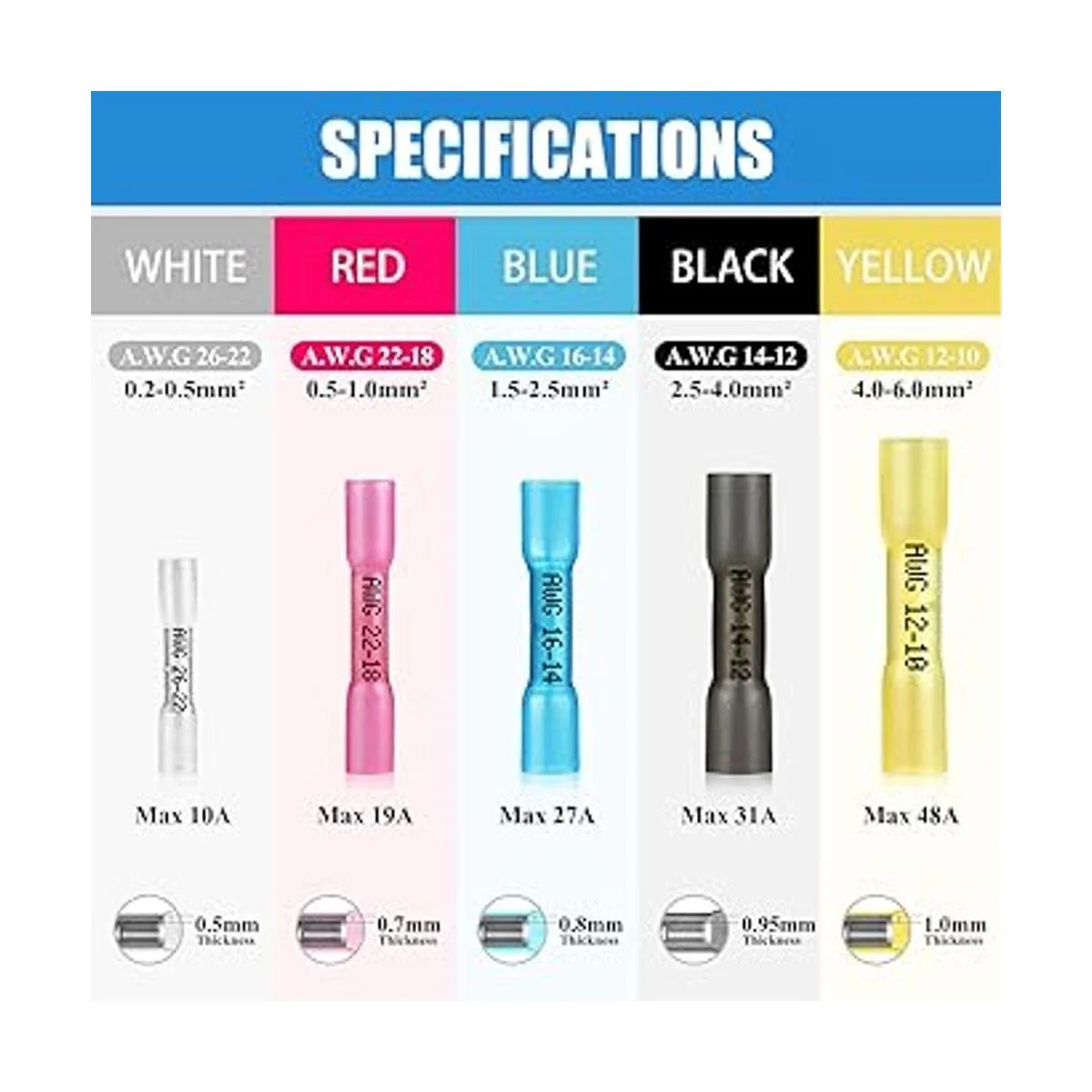 Paquete: el kit de conectores de crimpado termorretráctil viene dentro de una funda reutilizable, fácil de almacenar y transportar. Este paquete incluye 525 conectores azules impermeables que se pueden utilizar en cables AWG de 16 a 14.