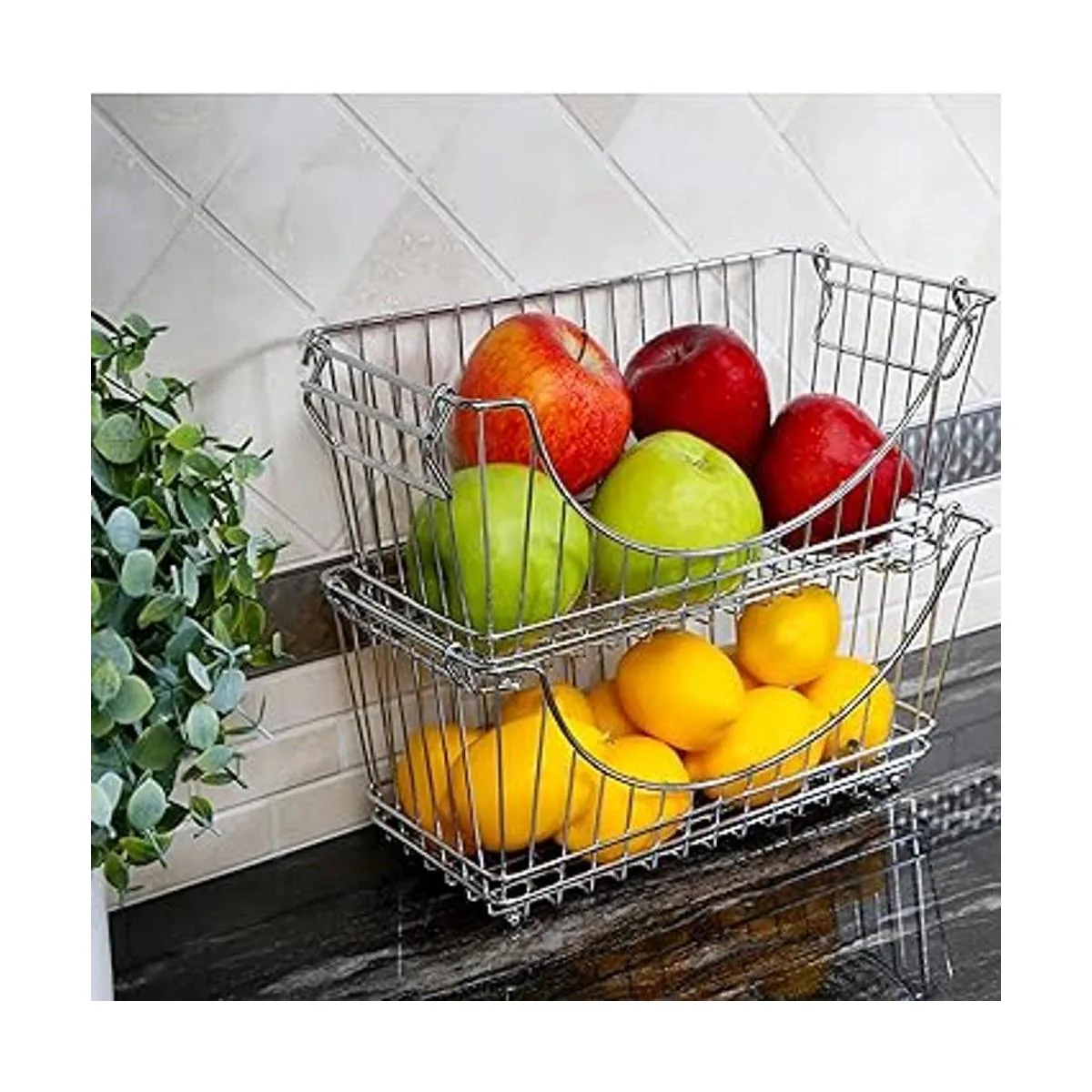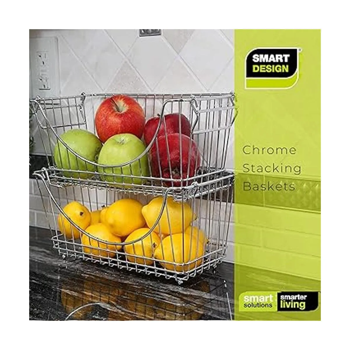 Canastas apilables ProMart cromadas juego de 2 unidades, Metal, Cromado, M