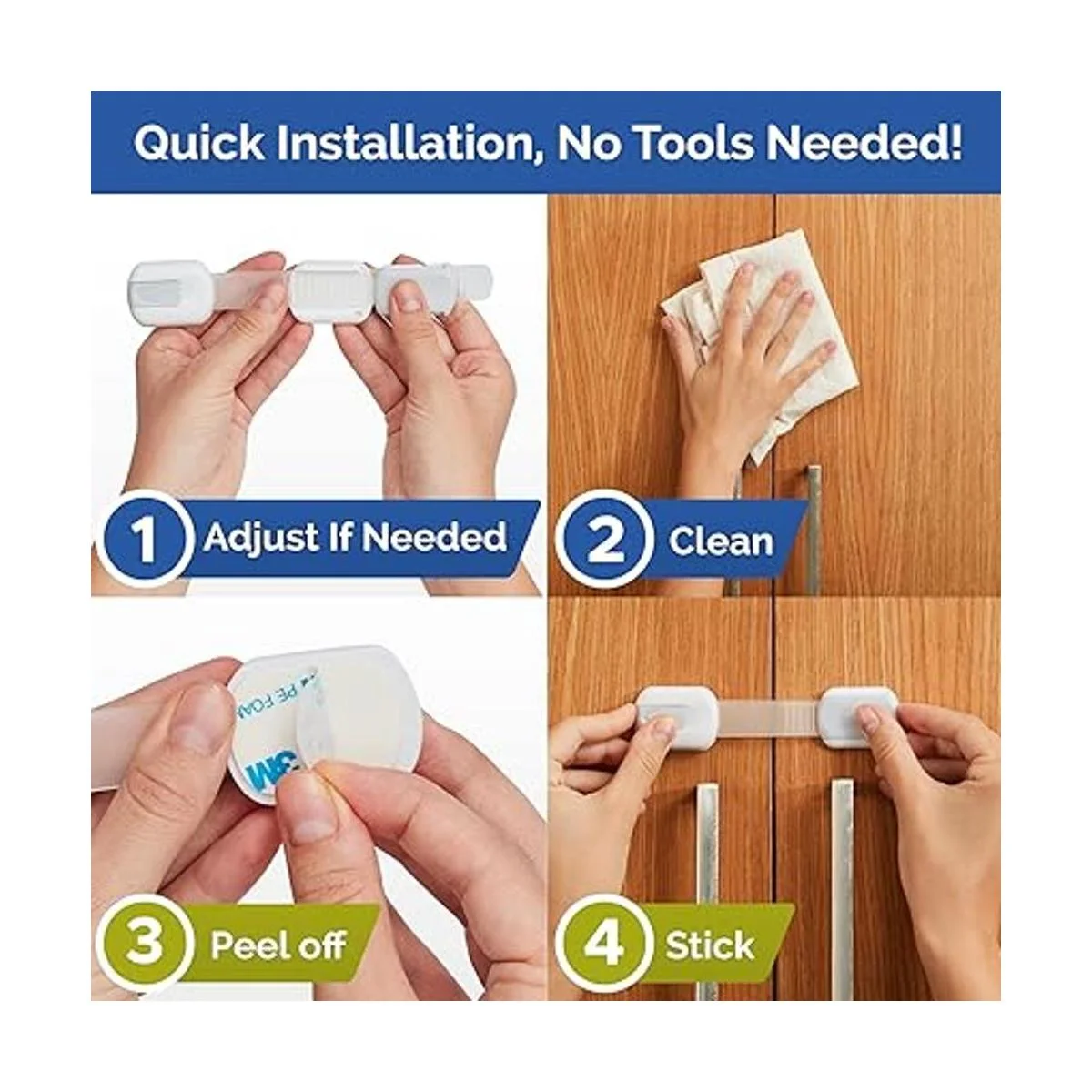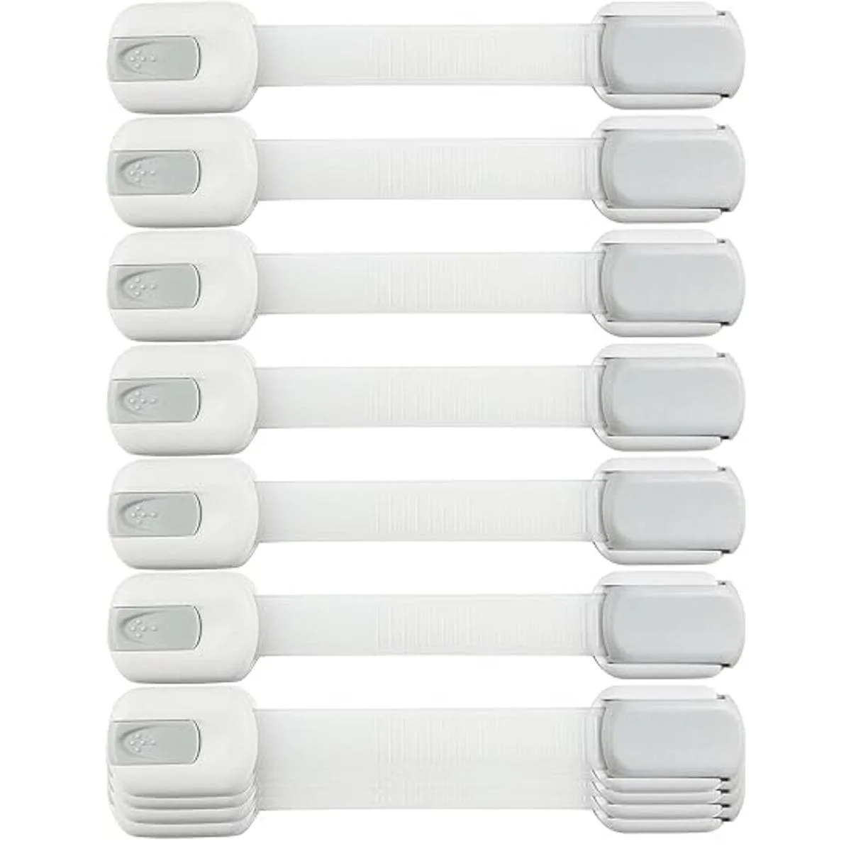 Candados de seguridad para niños paquete de 10 para armarios y cajones, inodoro, nevera y más. Almohadillas adhesivas 3M. Fácil instalación, no requiere taladrar, blancogris