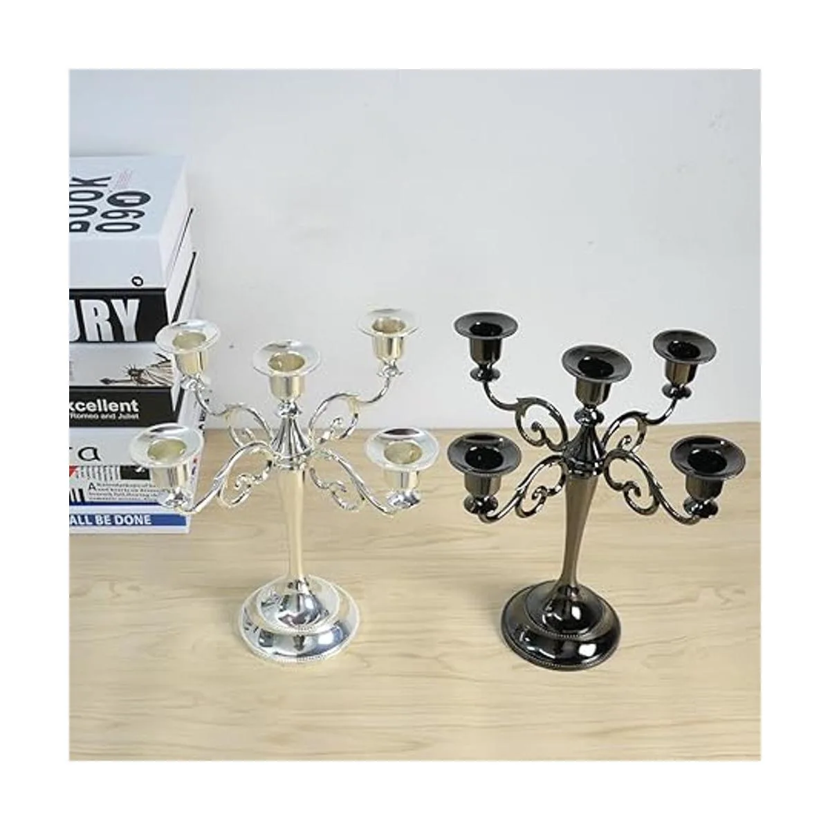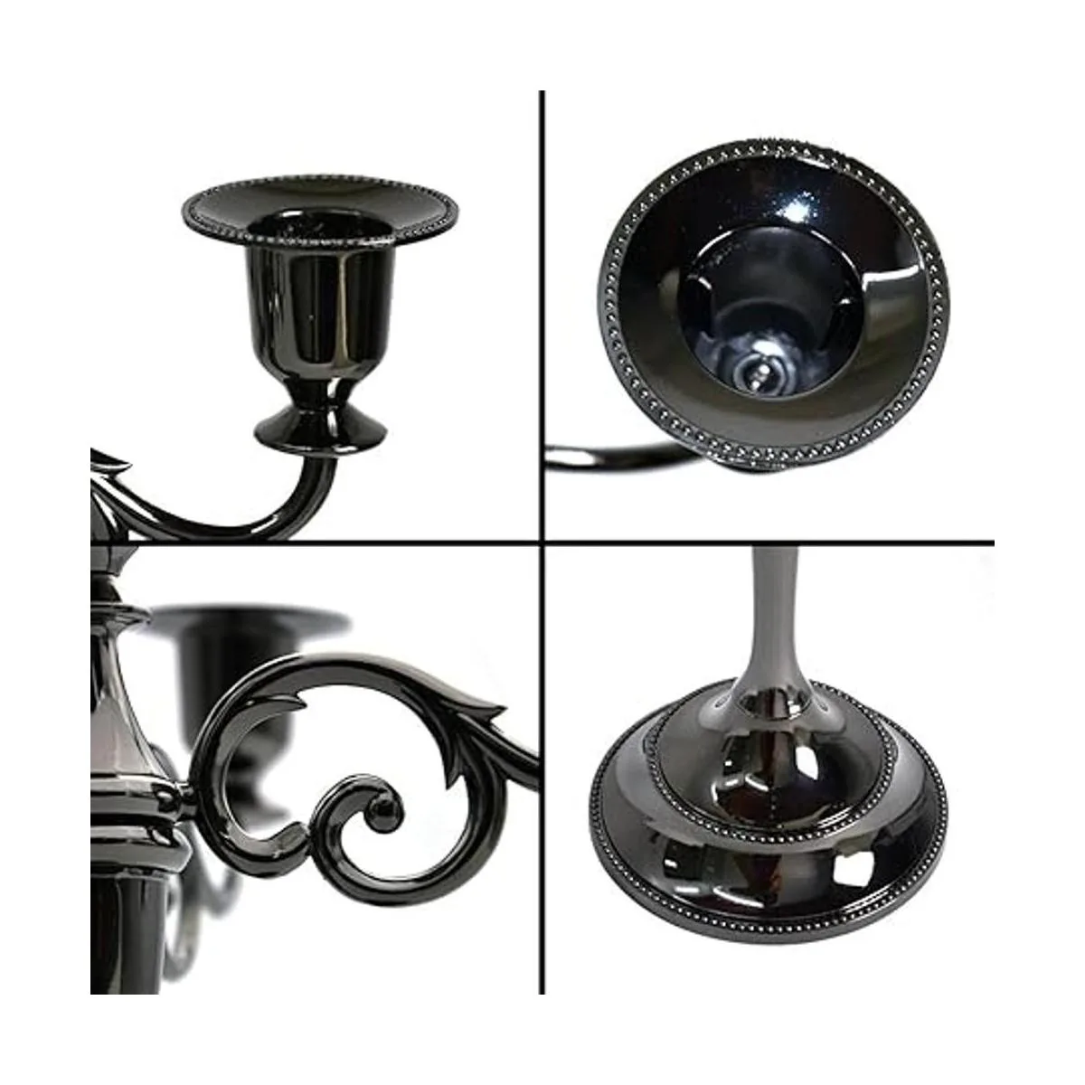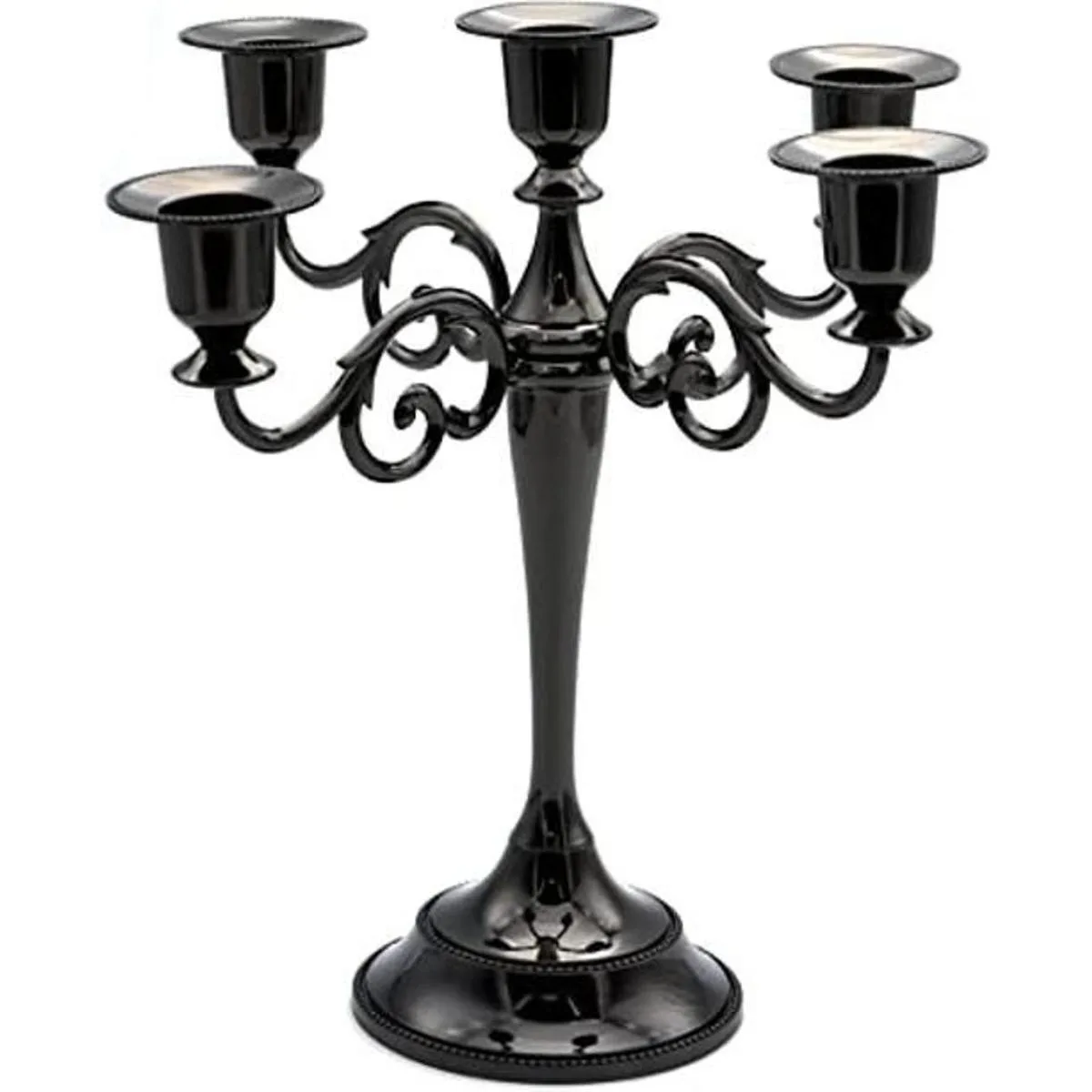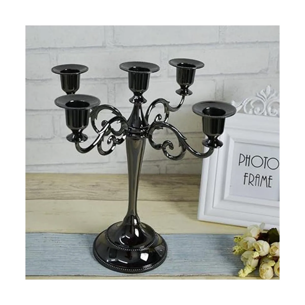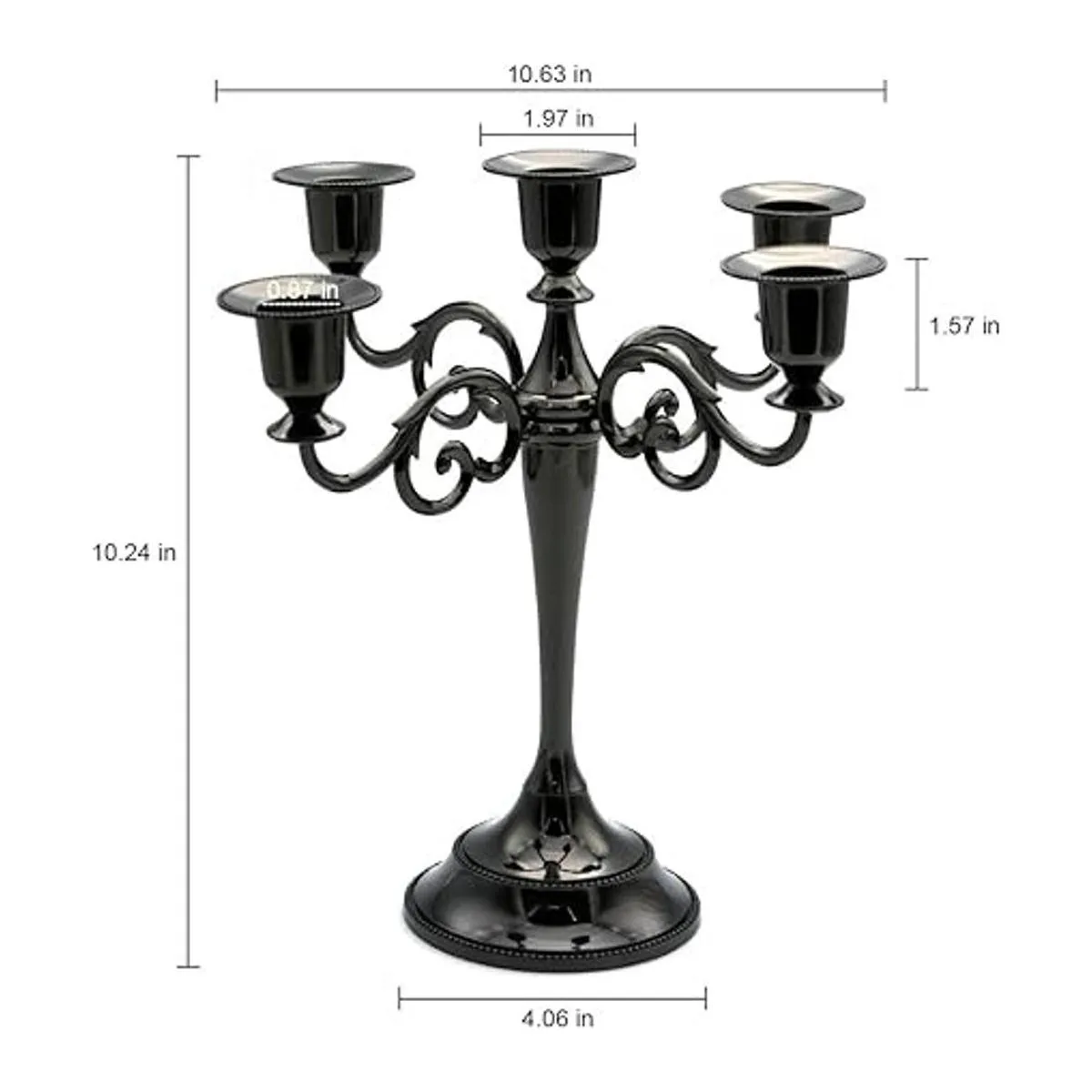 Candelabro de metal con 5 velas, portavelas de 10.6 pulgadas de alto, portavelas para eventos de boda, candelabro candelabro negro