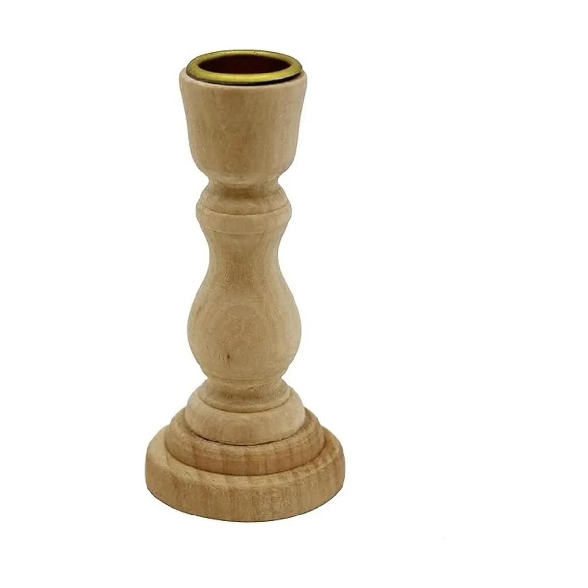 Candelabros de madera sin terminar de 4 pulgadas de alto con soporte de vela de metal, paquete de 6 unidades
