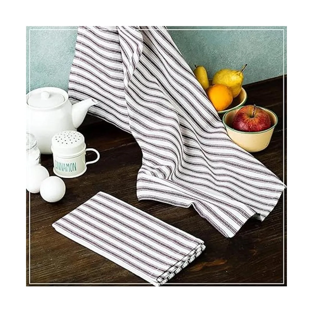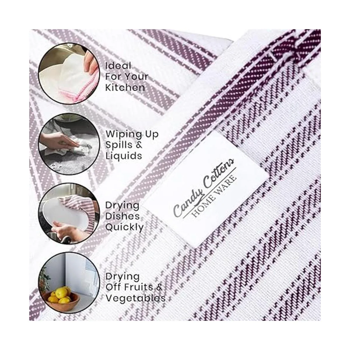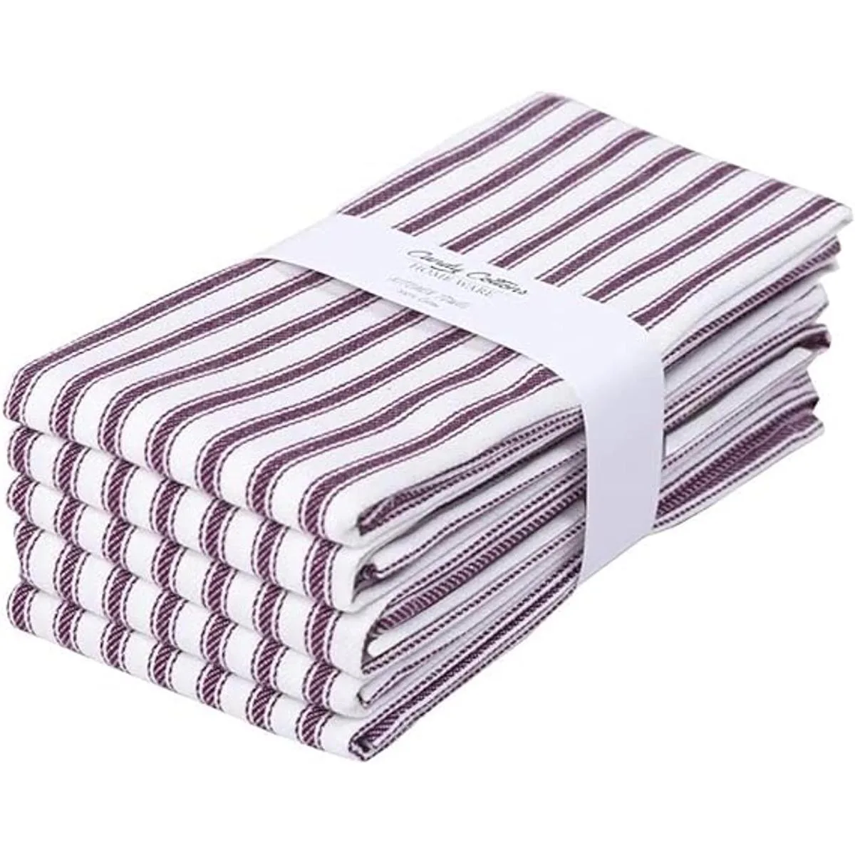 Candy Cottons Juego de 6 toallas de cocina 100 algodón, con lazo para colgar, juegos de paños para lavar y secar platos, toallas de té y toallas de mano de 18 x 28 pulgadas, rayas francesas, morado