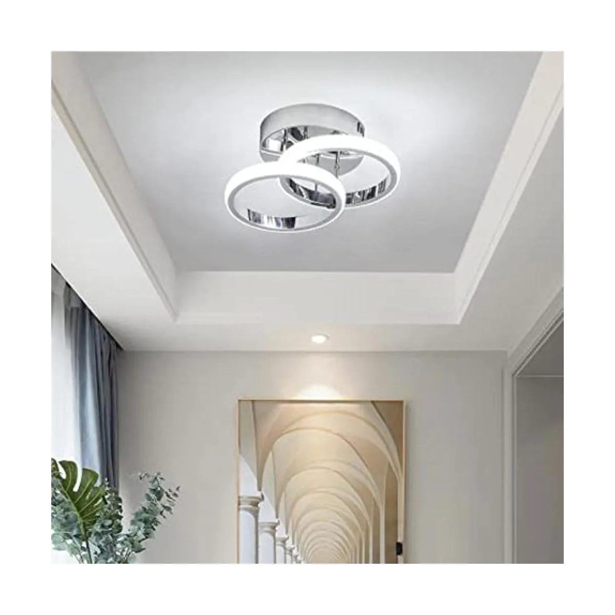 Diseño moderno: la moderna lámpara de techo LED adopta un diseño circular simple, y los dos anillos están escalonados hacia arriba y hacia abajo, destacando la belleza tridimensional de la lámpara de techo. Simple pero elegante, es fácil y rápido de montar o desmontar en la pared o techo.