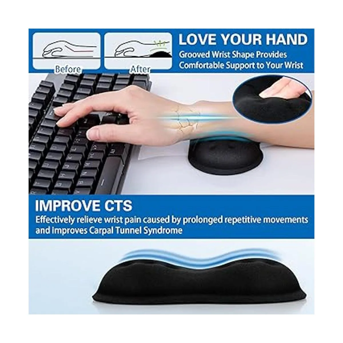 CanjoyPaquete de 2 reposamuñecas de espuma viscoelástica para ratón, cojín de soporte para muñeca, fibra superfina, suave, ergonómico, soporte para reposamanos para computadora, portátil, Mac, juegos u oficina