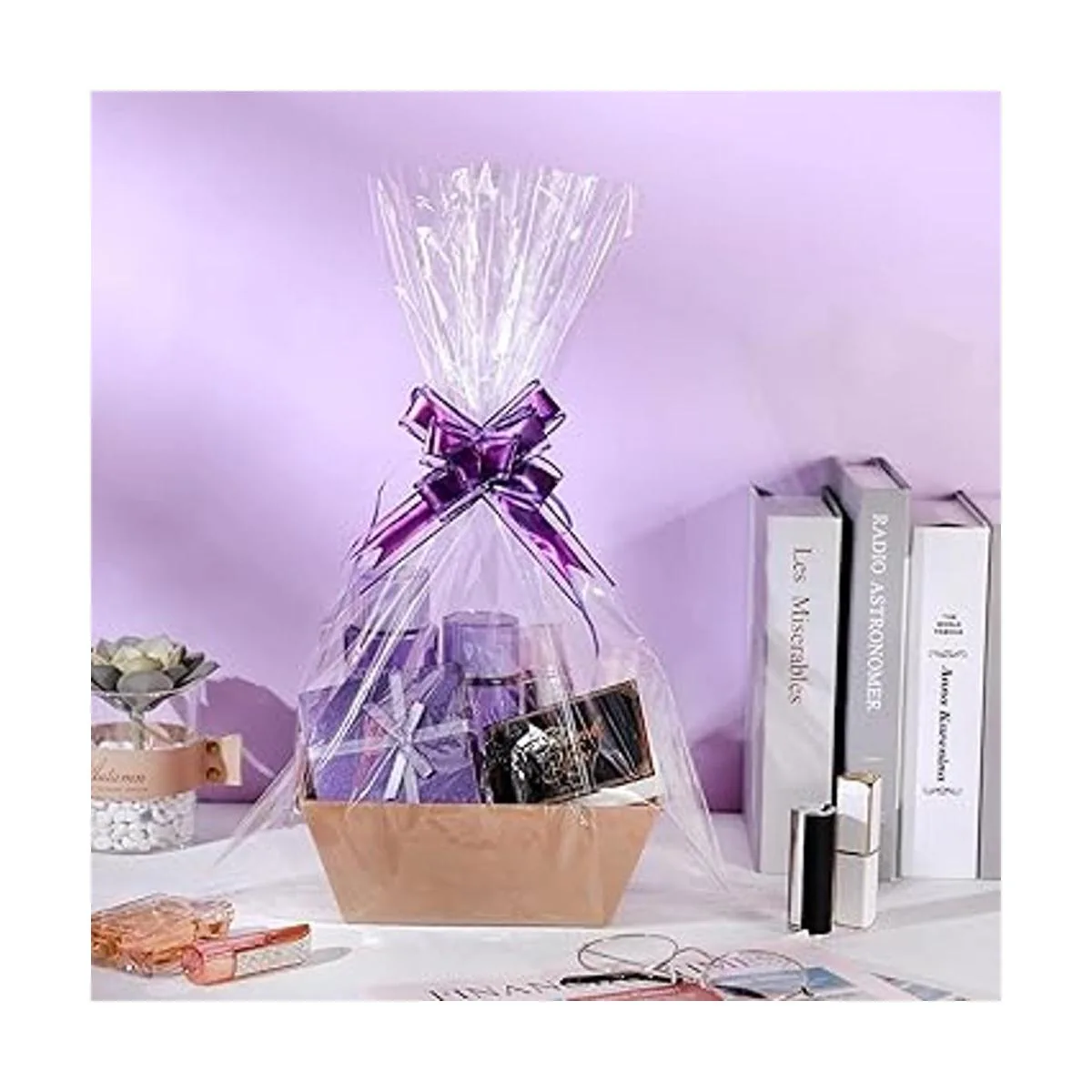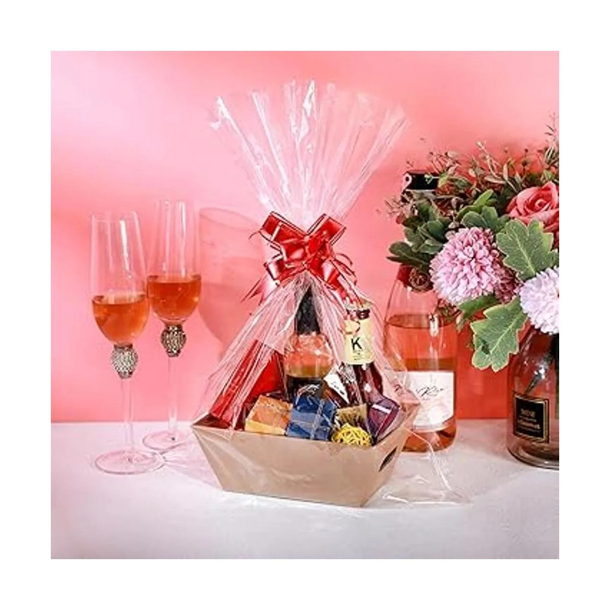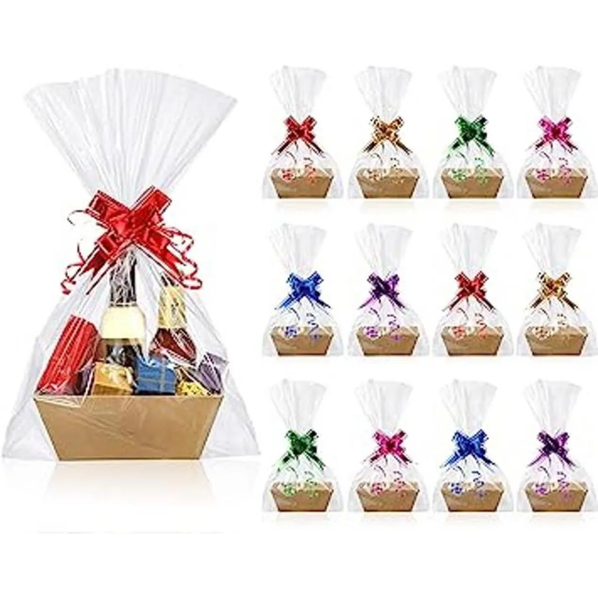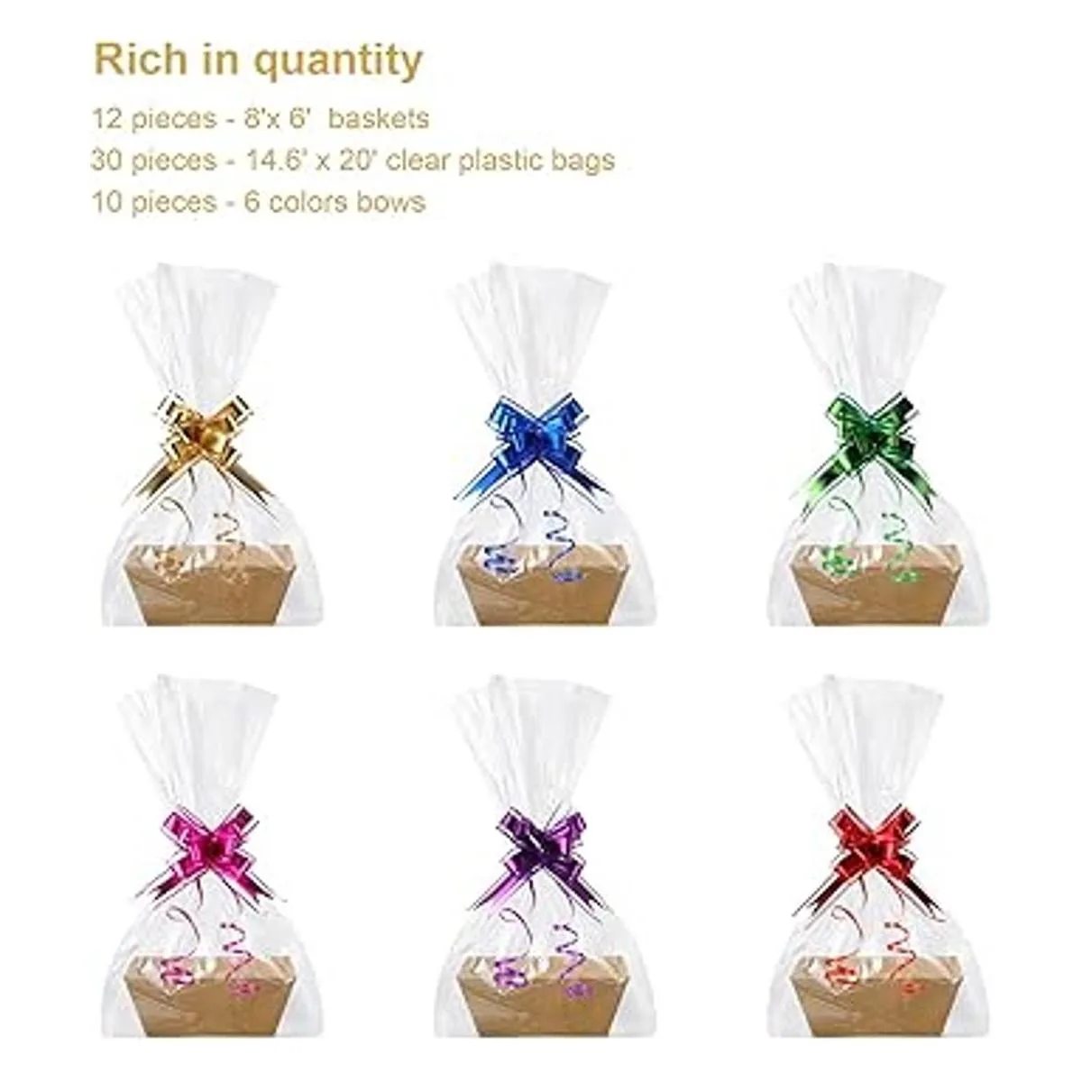 Lo que recibes: recibirás 12 cestas vacías, 20 bolsas de plástico transparente y 18 lazos en 6 atractivos colores, que son una combinación considerada y práctica que ofrece mucha comodidad para envolver y decorar tus regalos para fiestas