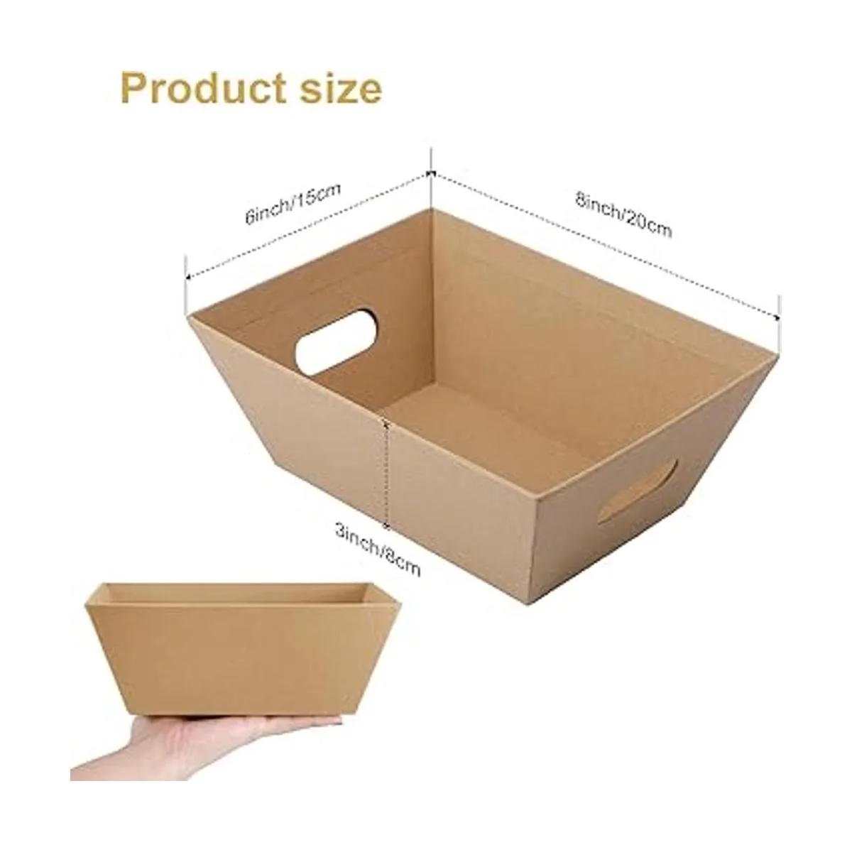 Material de estudio y fiable: en color marrón oscuro, las cestas del mercado con asas están hechas de cartón grueso de calidad, que es fuerte, no se rompe ni se deforma fácilmente, puede ofrecerte una experiencia de uso agradable