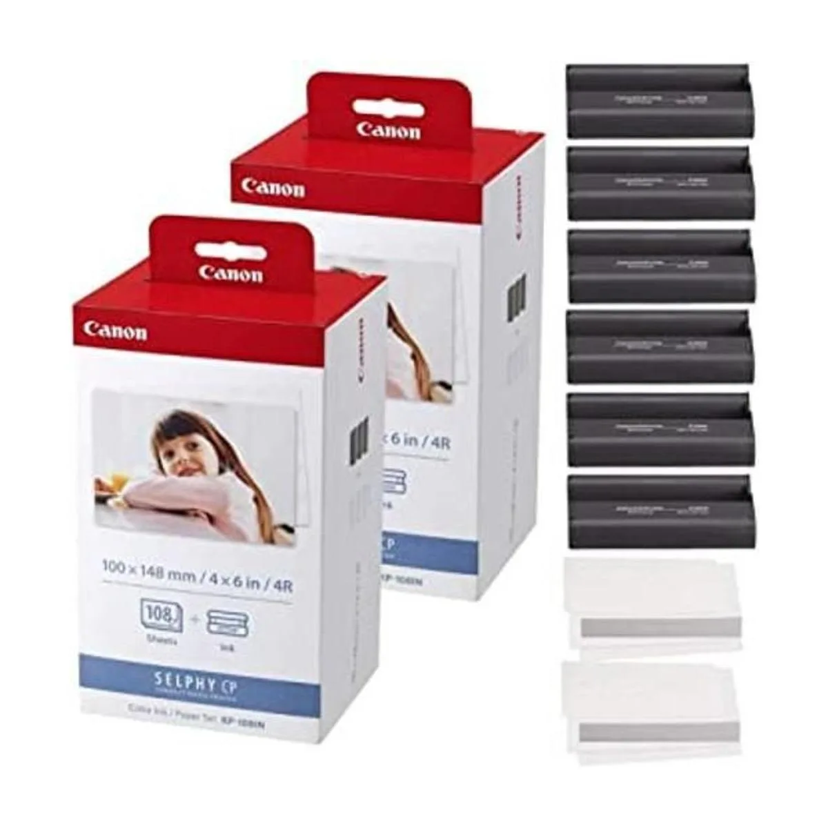 Canon KP108IN tinta a color y set de papel que incluye un total de 216 hoja y 6 cartuchos de tinta y paño de limpieza Fibertique.
