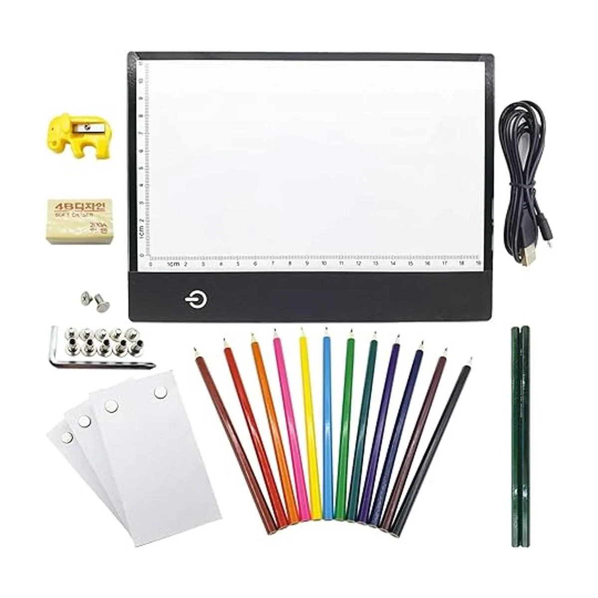 Kit de libro de dibujos animados ideal: creado pensando en los artistas, hemos creado un kit bien redondeado para ti que incluye todas tus necesidades de dibujo El combo contiene 1 almohadilla de luz A5, 540 páginas de papel de libro abatible, 6 tornillos de fijación largos y 6 tornillos de fijación extra cortos, 12 lápices de colores, 2 lápices de bocetos, 1 sacapuntas, 1 borrador, 1 destornillador, 1 manual de uso, 1 cable USB.