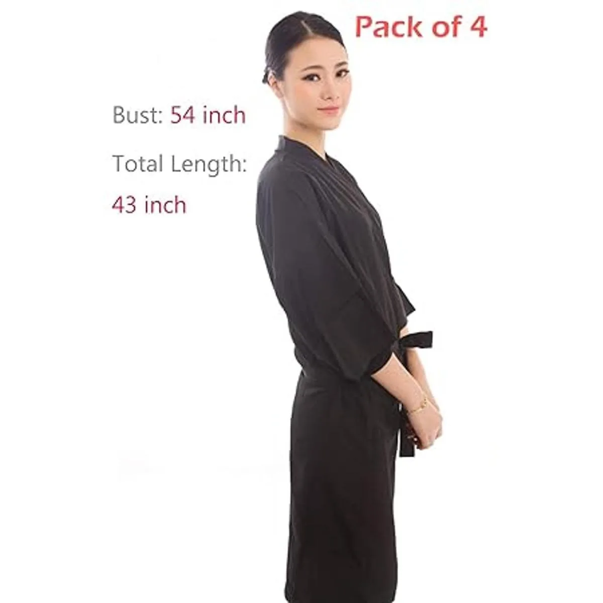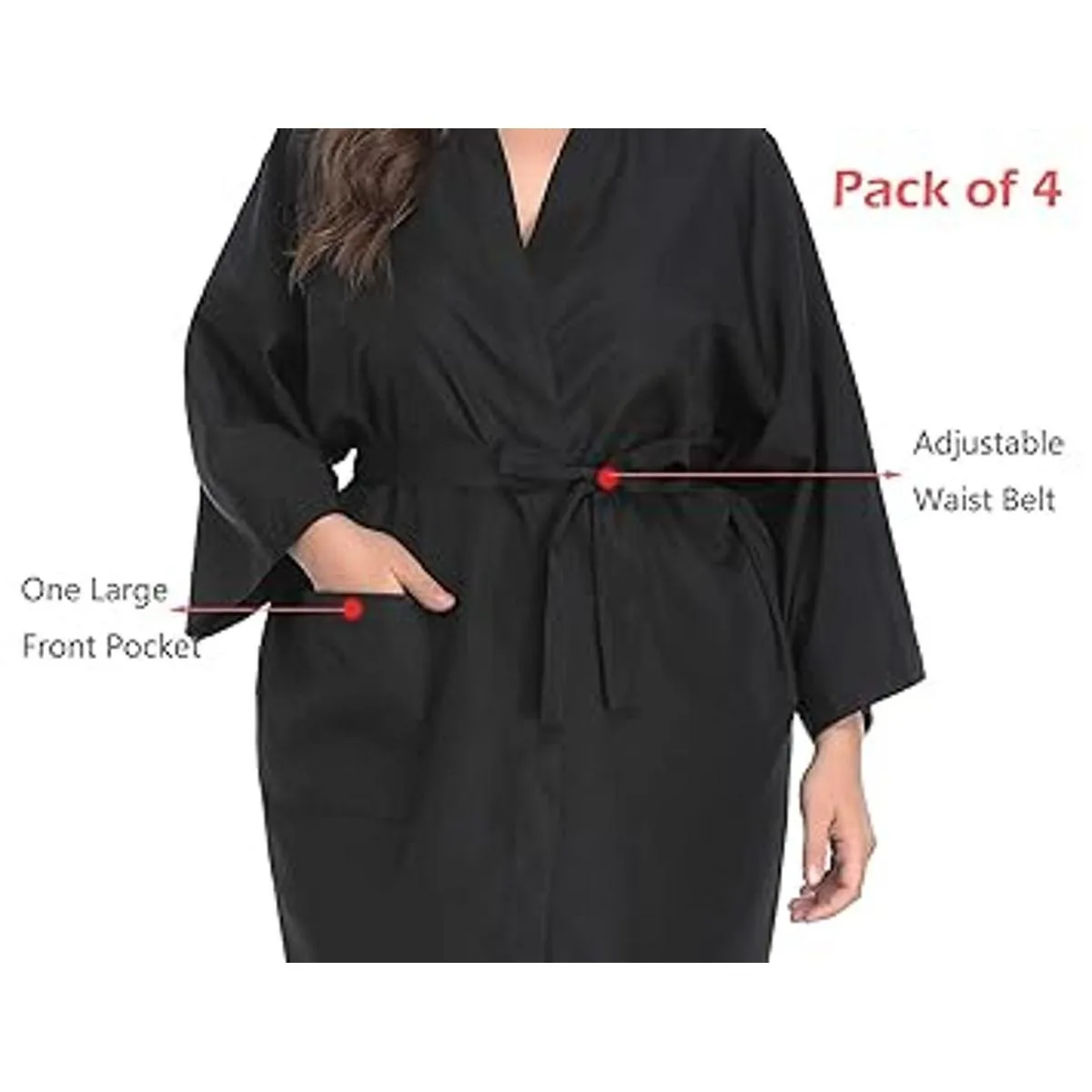 Paquete de 4 Vestidos tipo kimono para clientes de salón, busto: 52 pulgadas, longitud: 43 pulgadas, longitud de las mangas: 12 pulgadas. Las mangas anchas hacen que los clientes estén más cómodos, el cinturón extra largo está cosido para aumentar la durabilidad.