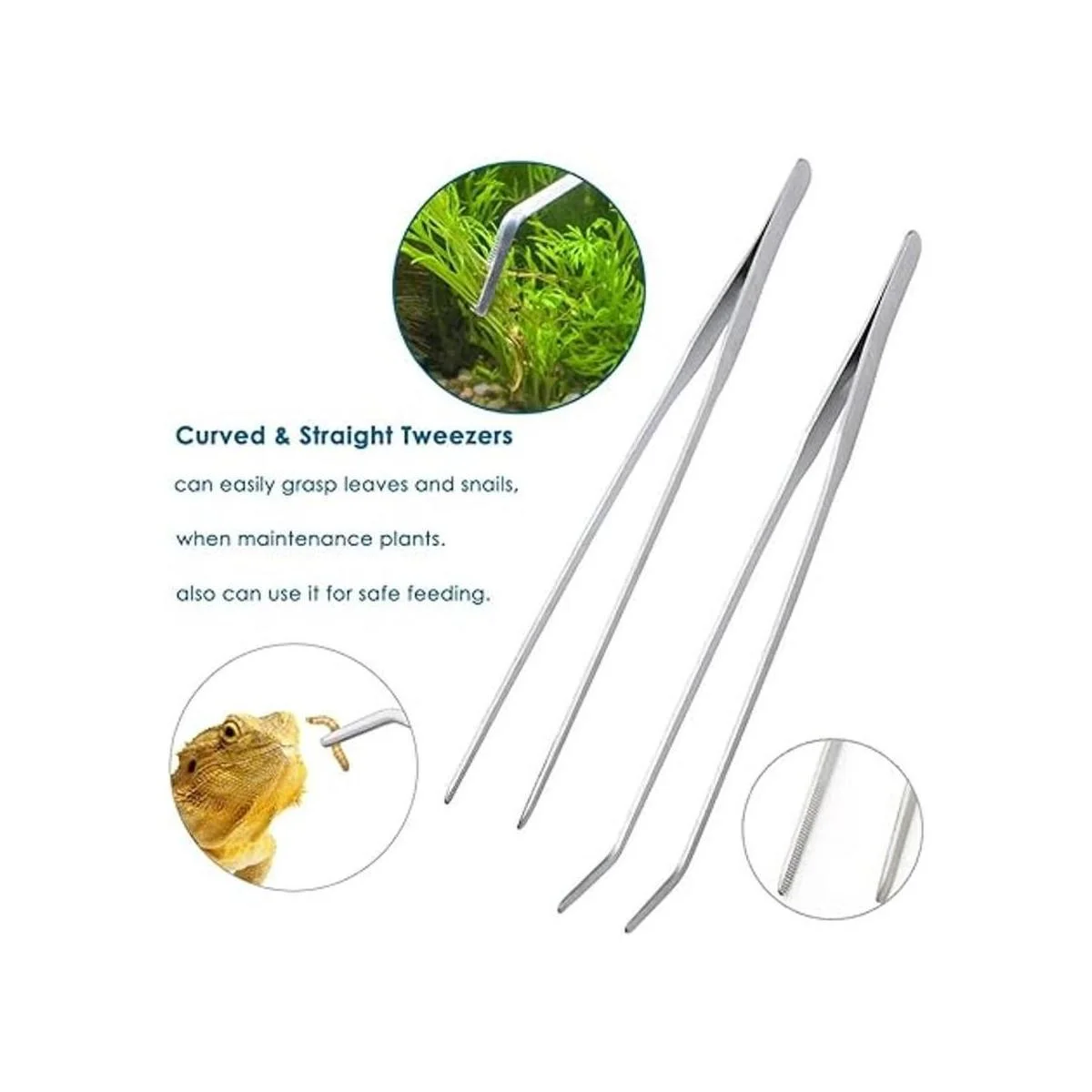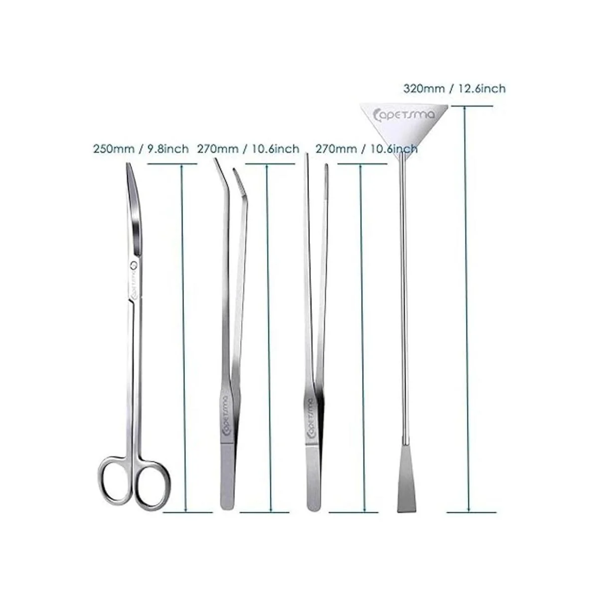 capetsma Aquascape Tools Herramientas largas de acero inoxidable para plantas de acuario, pinzas de acuario, tijeras y espátulas, kit de bonsái, raspadores de algas, kit de limpieza de acuario para peceras