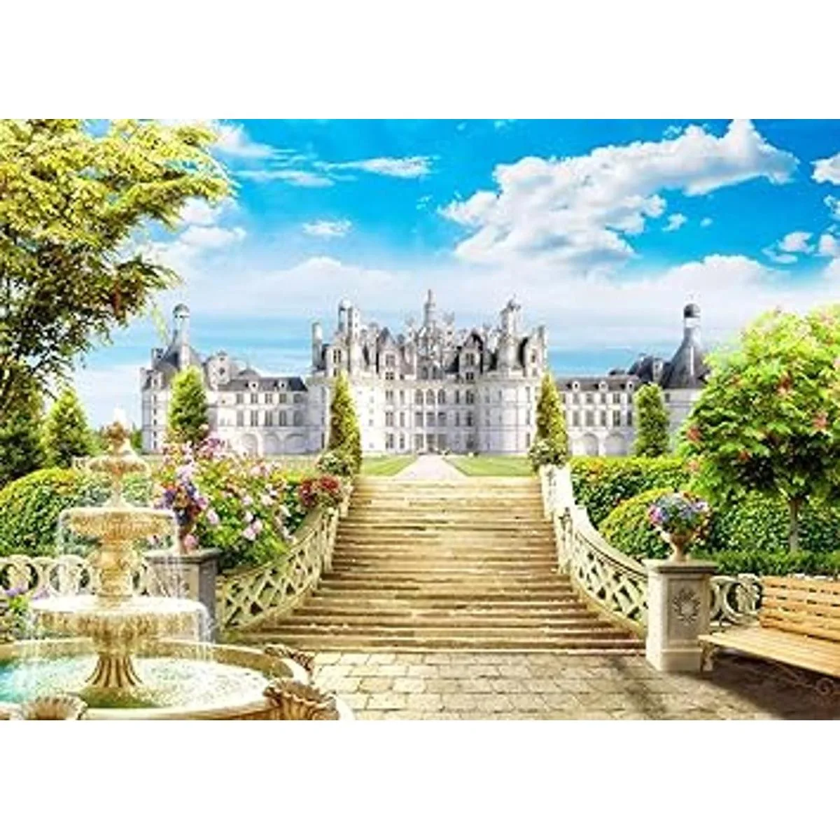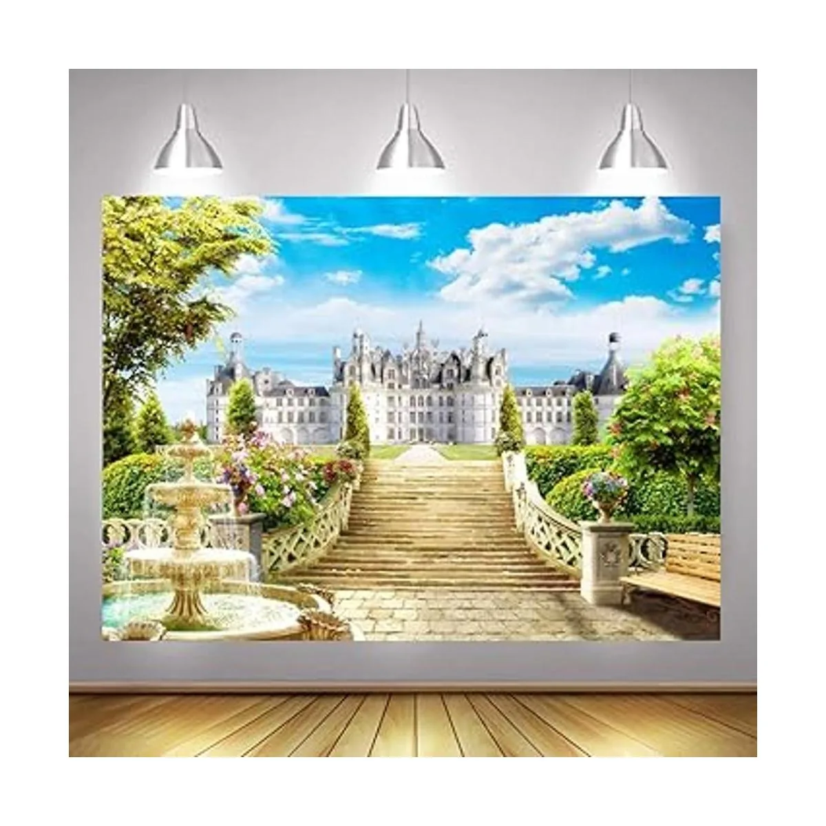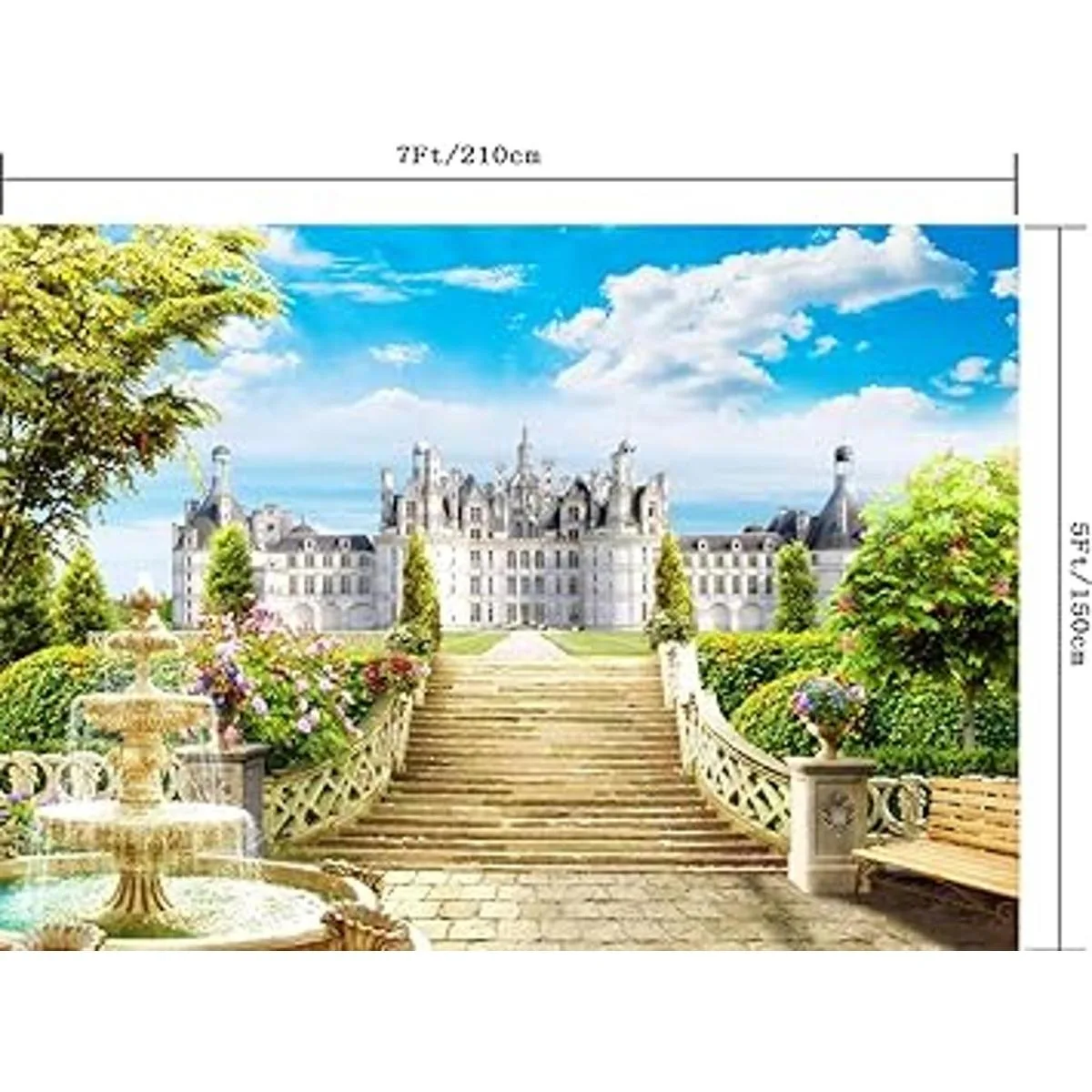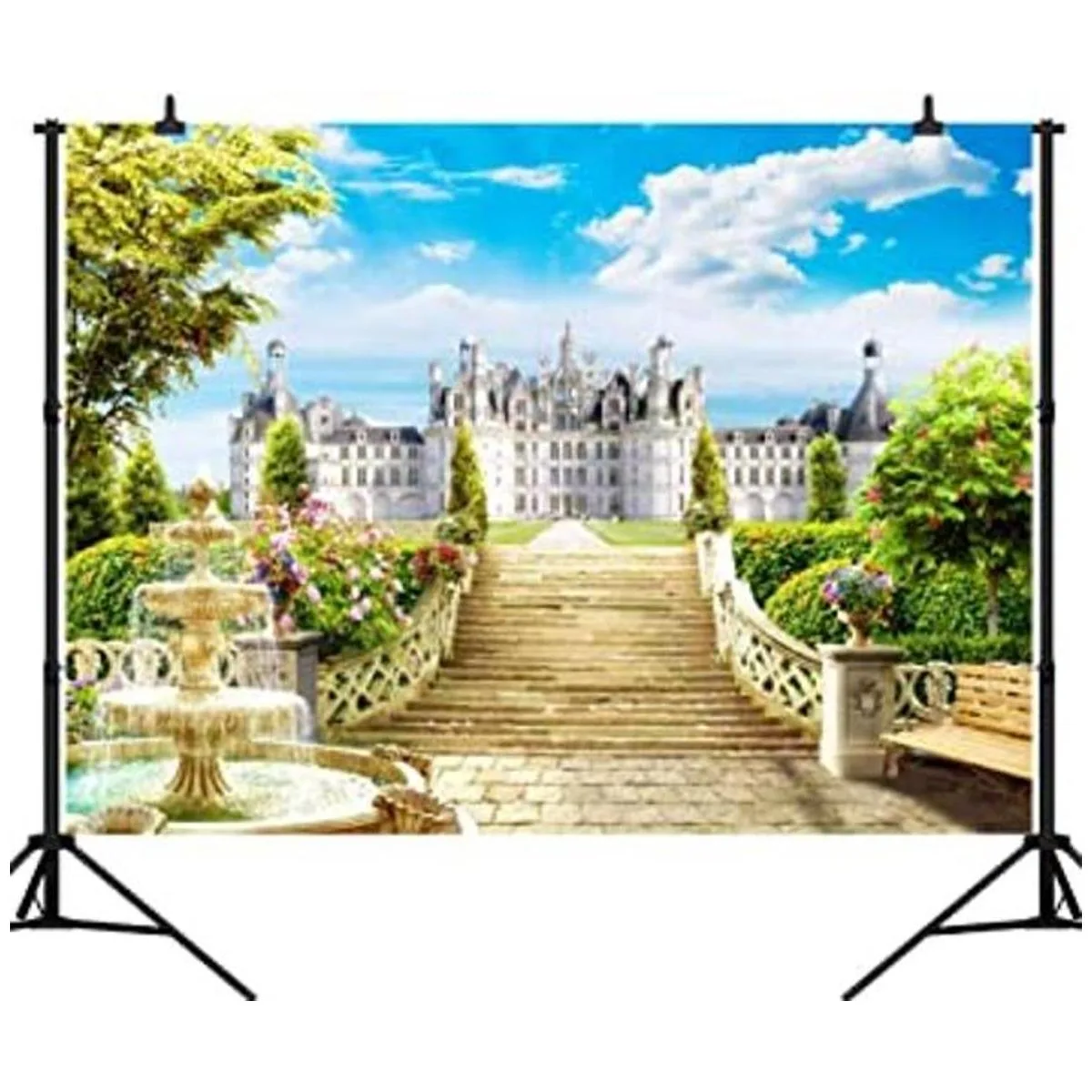 CapiSco telón de fondo de vinilo para escaleras de castillo, para estudio de fotografía, fondo, fuente al aire libre, azul cielo, nubes blancas, decoración para bodas, fiestas, poliéster, sin costuras, para estudio fotográfico, telón de fondo SCO44