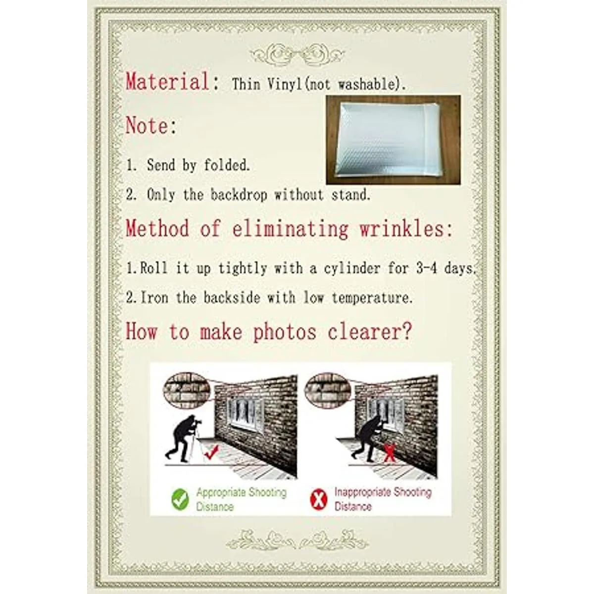 2. Material de fondo de fotografía: vinilo fino, sin bolsillo, impreso por ordenador para realismo. Impreso en material de fibra química para un peso ligero y fácil manejo, excelente tratamiento de color y detalles realistas.