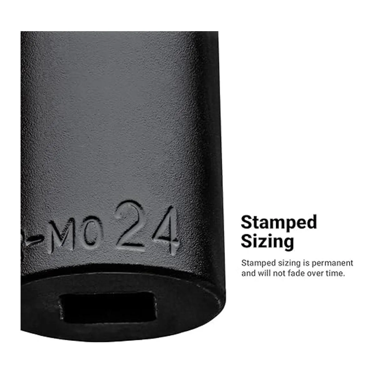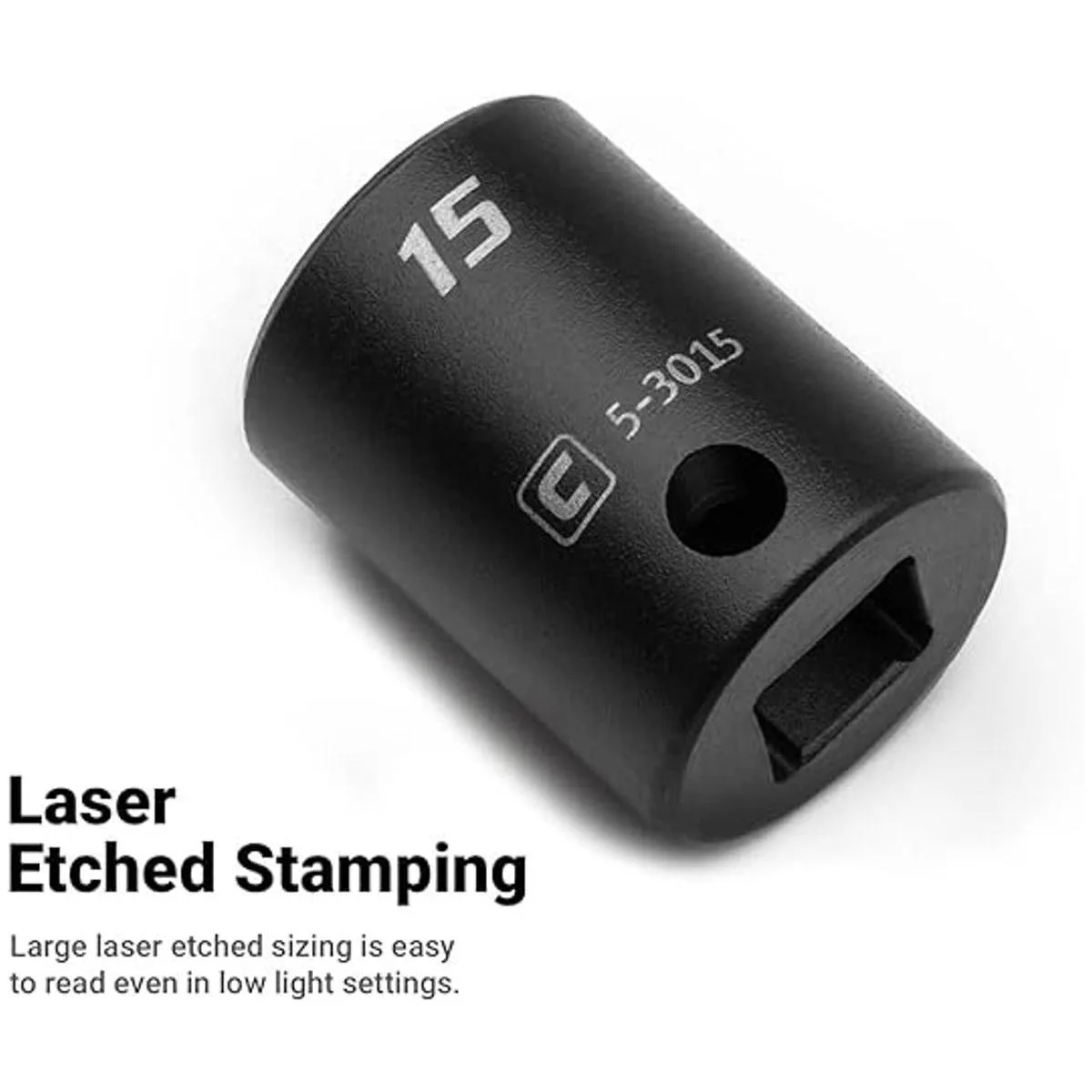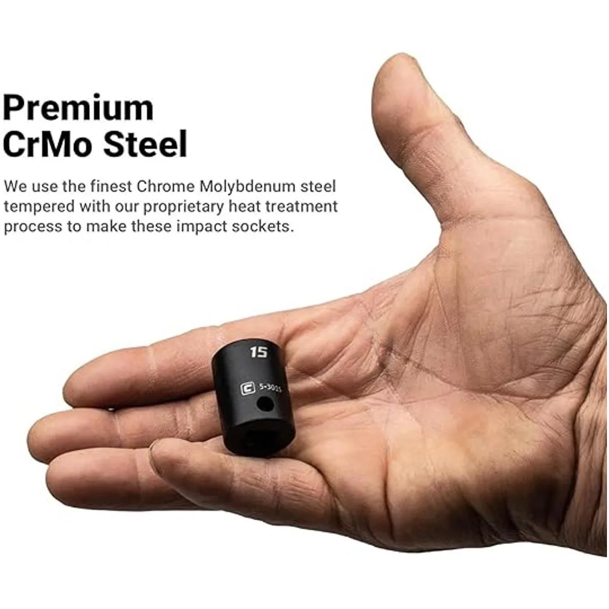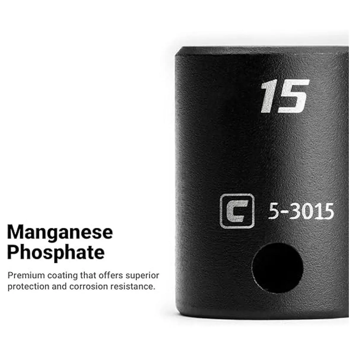 Capri Tools Juego de llaves de impacto poco profundas de 38 pulgadas, métricas, 8 a 0.866 in, acero al cromo molibdeno de alta calidad, 15 piezas