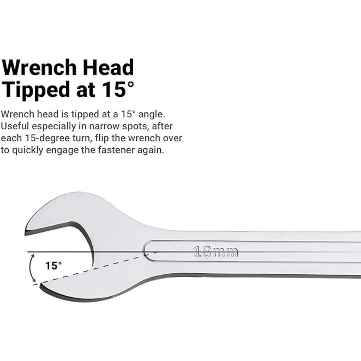 El cabezal de la llave está inclinado en un ángulo de 15 grados. til especialmente en puntos estrechos, después de cada giro de 15 grados, gira la llave para enganchar rápidamente el tornillo de nuevo