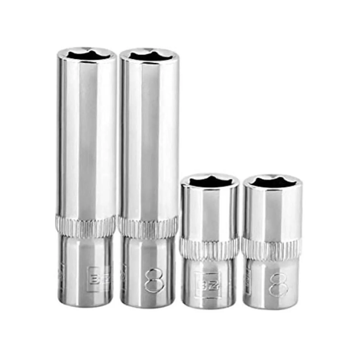 Este juego incluye cuatro llaves de vaso de 0.315 in: 1/4 pulgadas, seis puntos, dos profundos y dos poco profundos