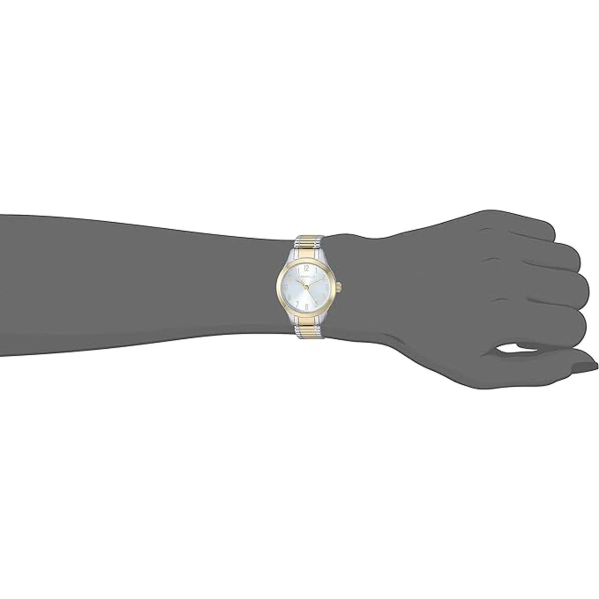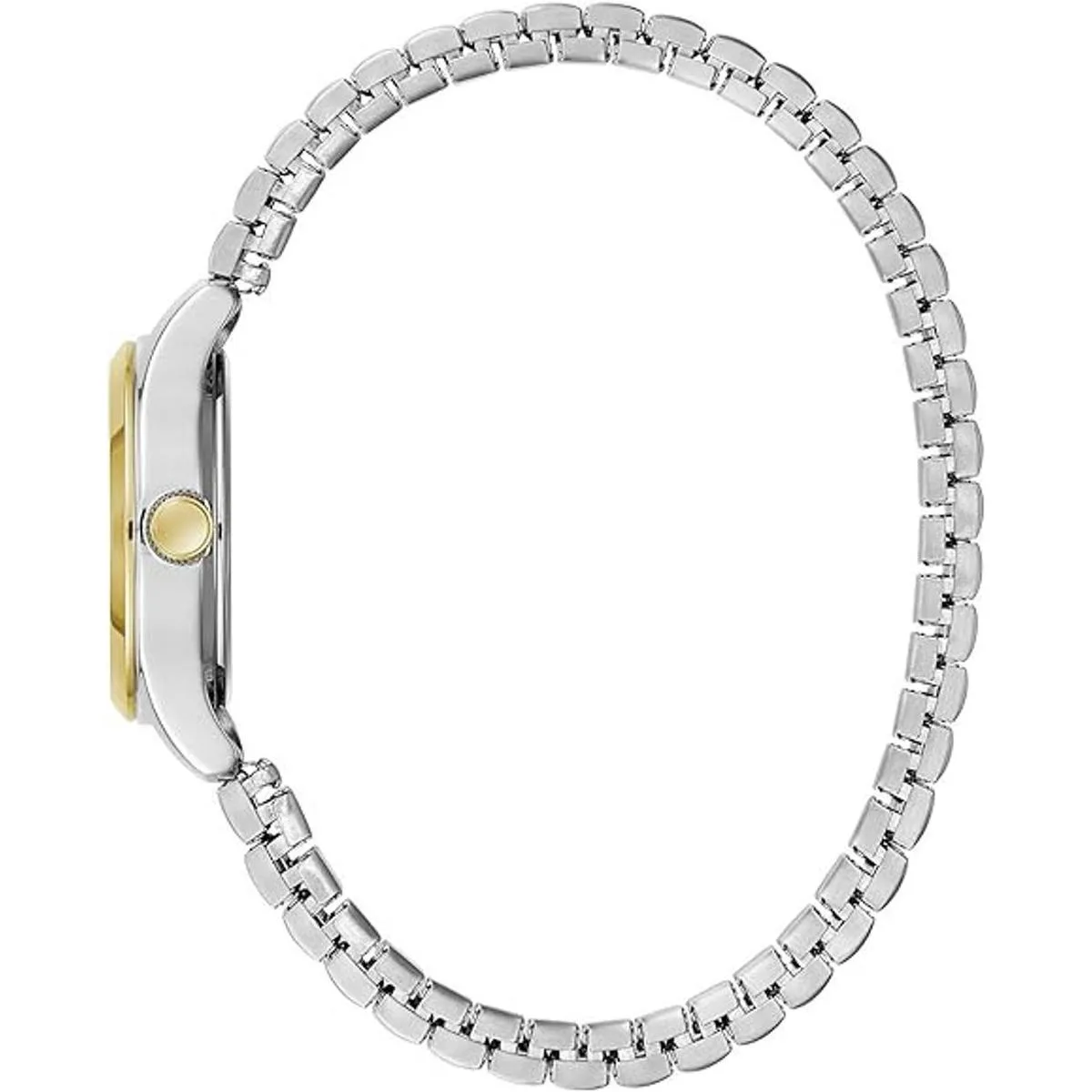 Everyday style thats anything but basic Silverwhite threehand dial paired with twotone gold and stainless comfortfit expansion bracelet. Case Diameter: 24mm Case Thickness: 7.5mm Water Resistance: 30M 3Year Limited Warranty