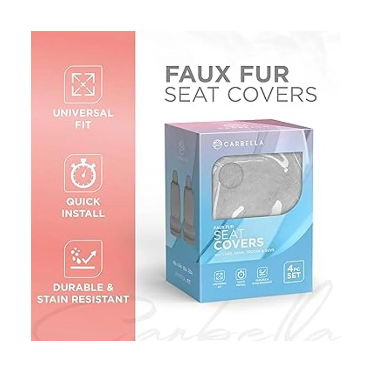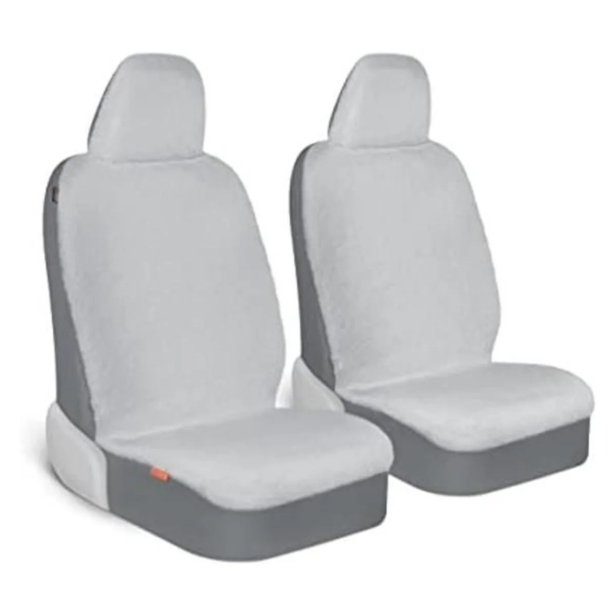 Carbella Aspen Fundas de asiento de piel de oveja gris para mujer, 2 unidades, fundas de asiento de coche de piel sintética de felpa para asientos delanteros, bonitos protectores de asiento de ajuste universal para automóvil, camión, furgoneta, SUV