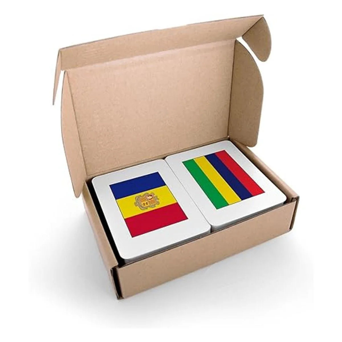Completo: 240 tarjetas cubren todas las banderas del país del mundo, incluyendo algunas de las regiones especiales como Hong Kong, Macao, Samoa Americana, Polinesia Francesa, Islas Malvinas, etc. Una bandera en una tarjeta, todo en tarjetas separadas