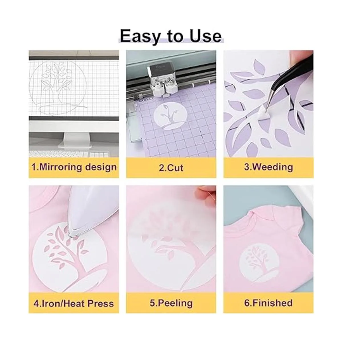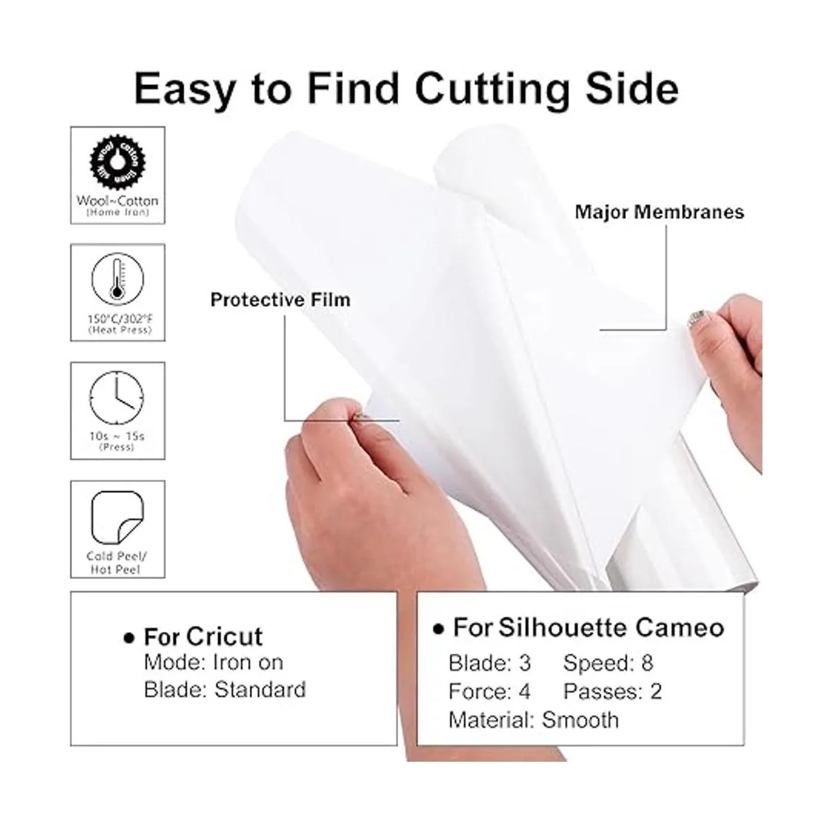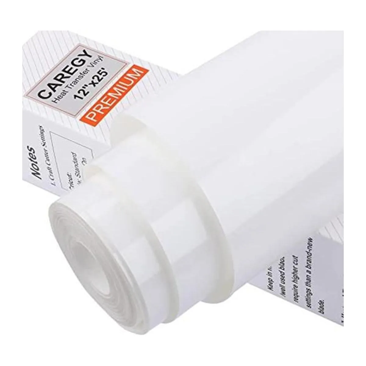 CAREGY Rollo HTV de 12 pulgadas x 25 pies, vinilo de transferencia de calor para planchar blanco