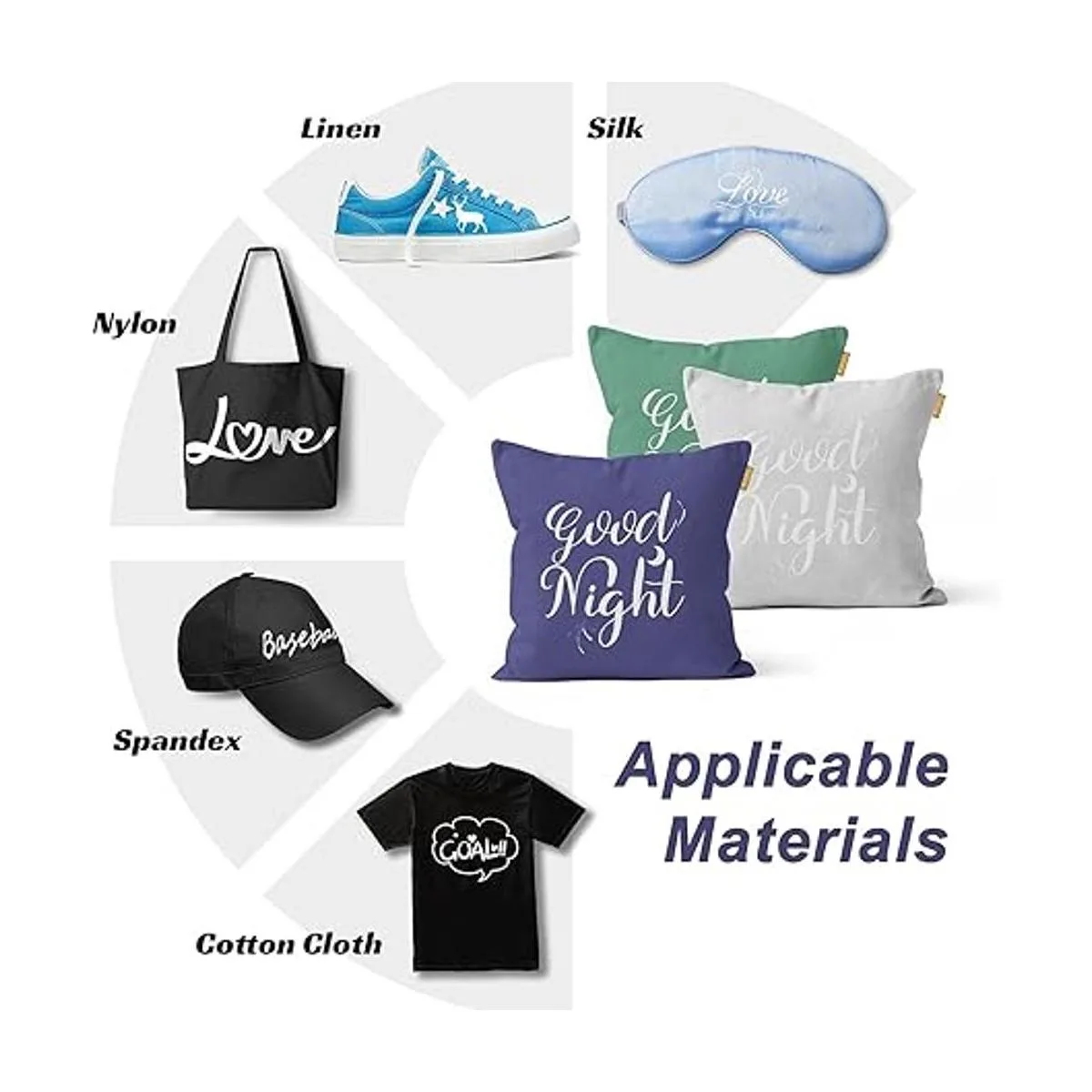 Decora camisetas, pantalones, sudaderas, bolsos, zapatos, almohadas y mucho más con una prensa de calor o plancha casera Se aplica a una temperatura más baja de 302F durante 15 segundos con presión media. Se adhiere a 100 algodón, 100 poliéster, mezclas de algodón/poliéster y cuero.