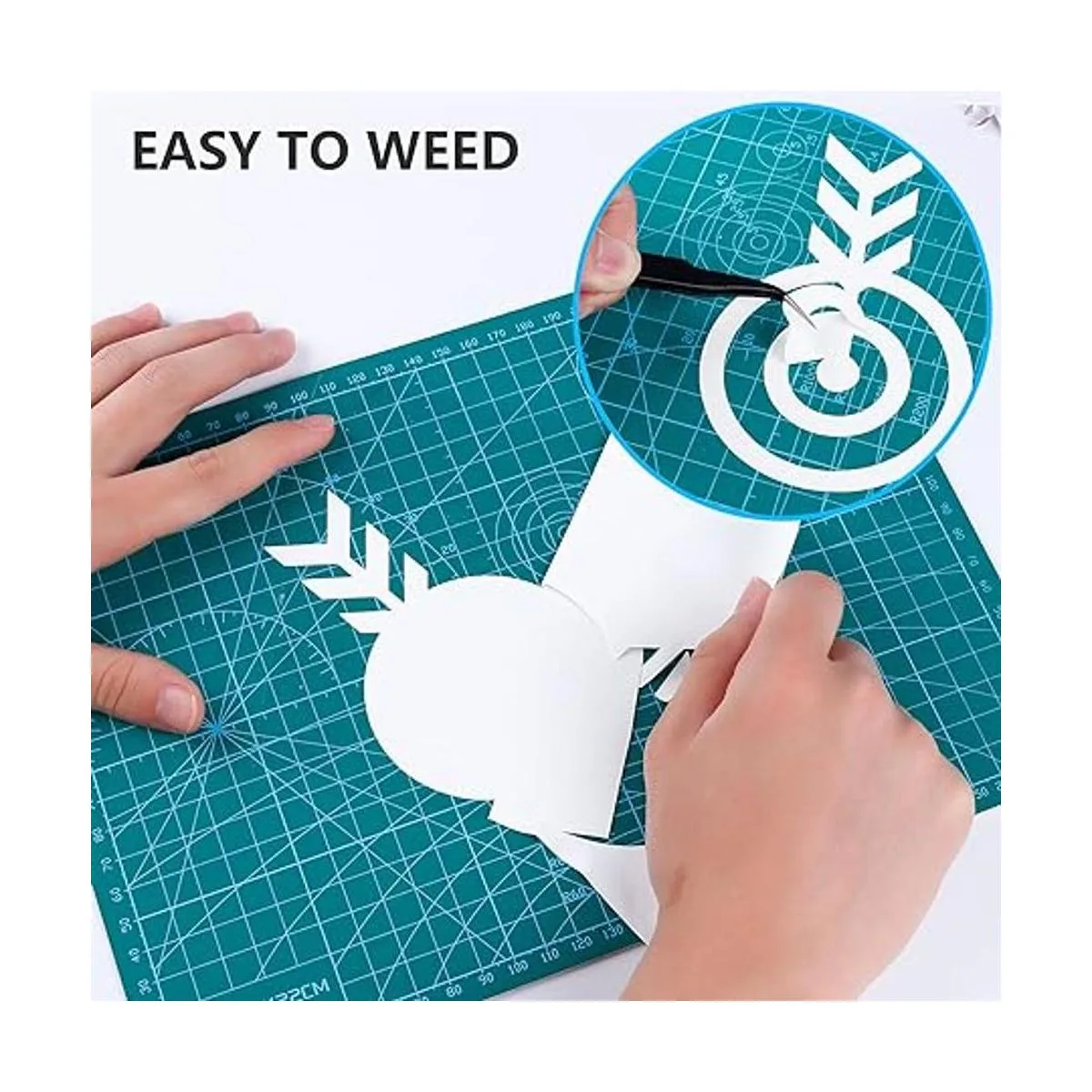 Fácil de cortar y cortar: material fácil y listo para cortar diseñado para decoración personalizada de prendas. La parte trasera es sensible a la presión y a la temperatura y más fácil de quitar una vez que el diseño se ha transferido a la superficie deseada. Easy to Weed es un poliuretano duradero que se utiliza para diseñar camisetas personalizadas, ya que se puede lavar varias veces sin comprometer su integridad.