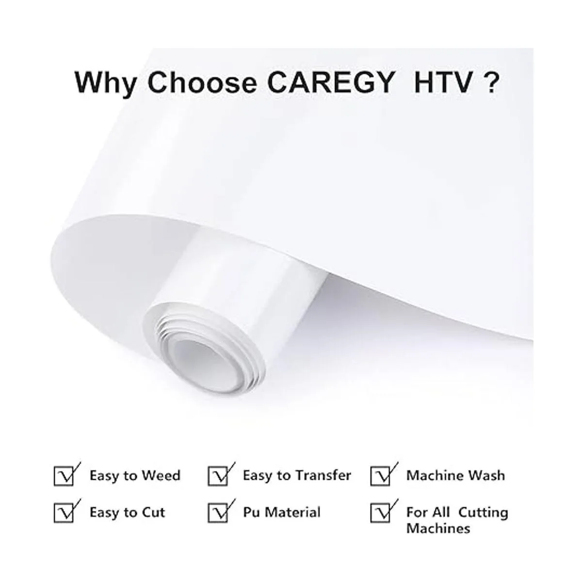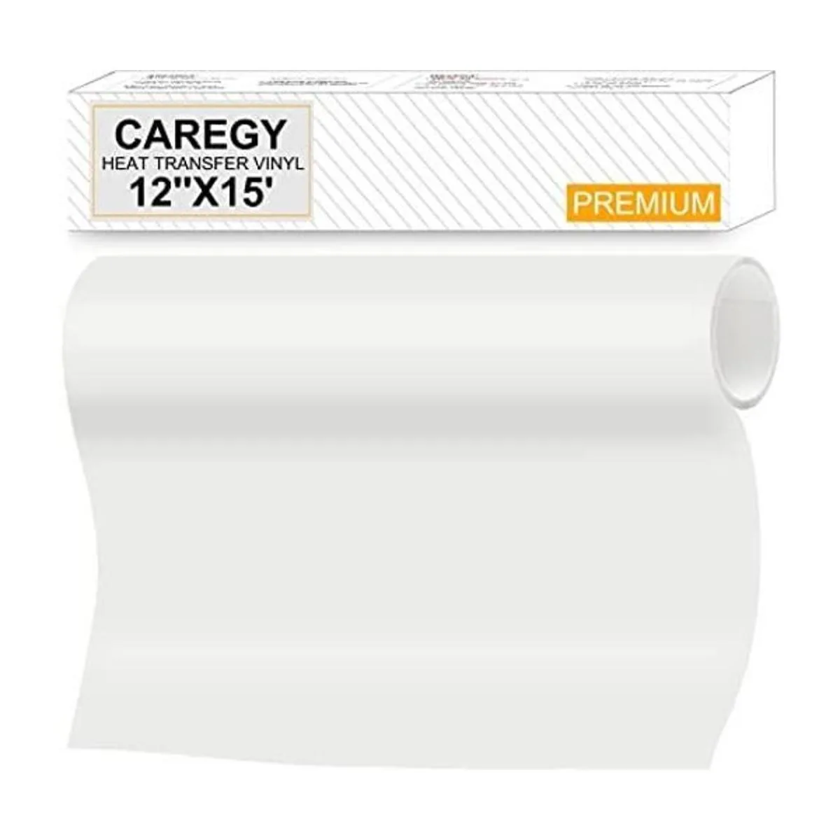CAREGY Vinilo termotransferible de 12 pulgadas x 15 pies, fácil de cortar y planchar, vinilo de transferencia de calor, diseño de prensa de calor para camisetas, color blanco brillante