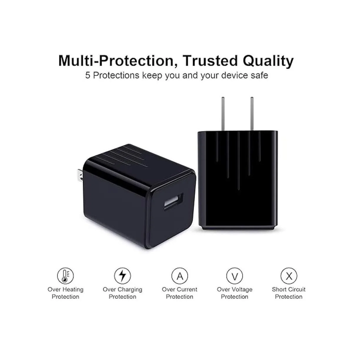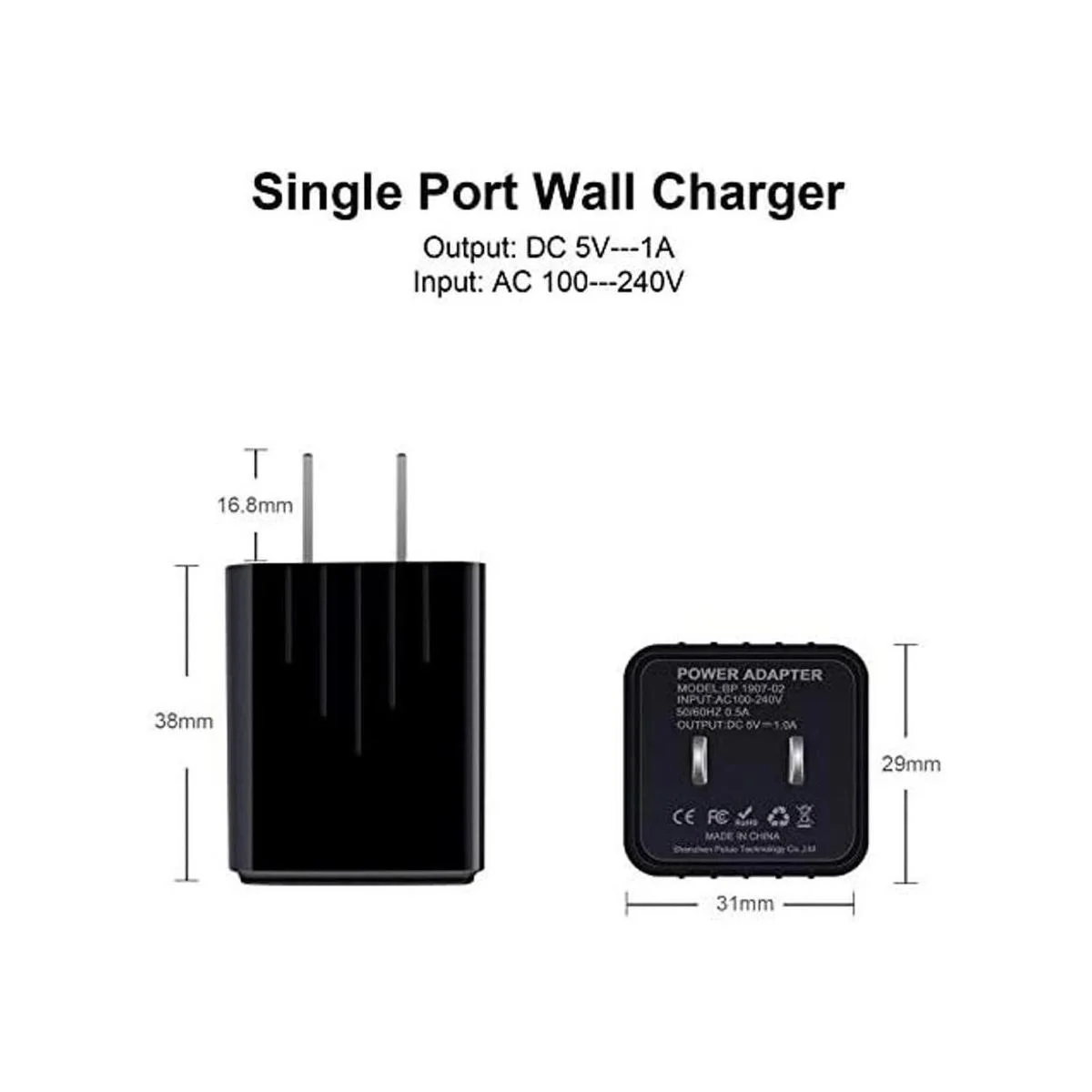 Rendimiento superior: cargador de pared de un solo puerto. Entrada: CA 100240 V estándar estadounidense y mundial, salida: CC 5 V/1 A. Este cargador de pared para Android tiene un sistema de protección integrado contra sobrecalentamiento, sobrecorriente, sobrecarga. Rendimiento superior para maximizar la seguridad de tus dispositivos.