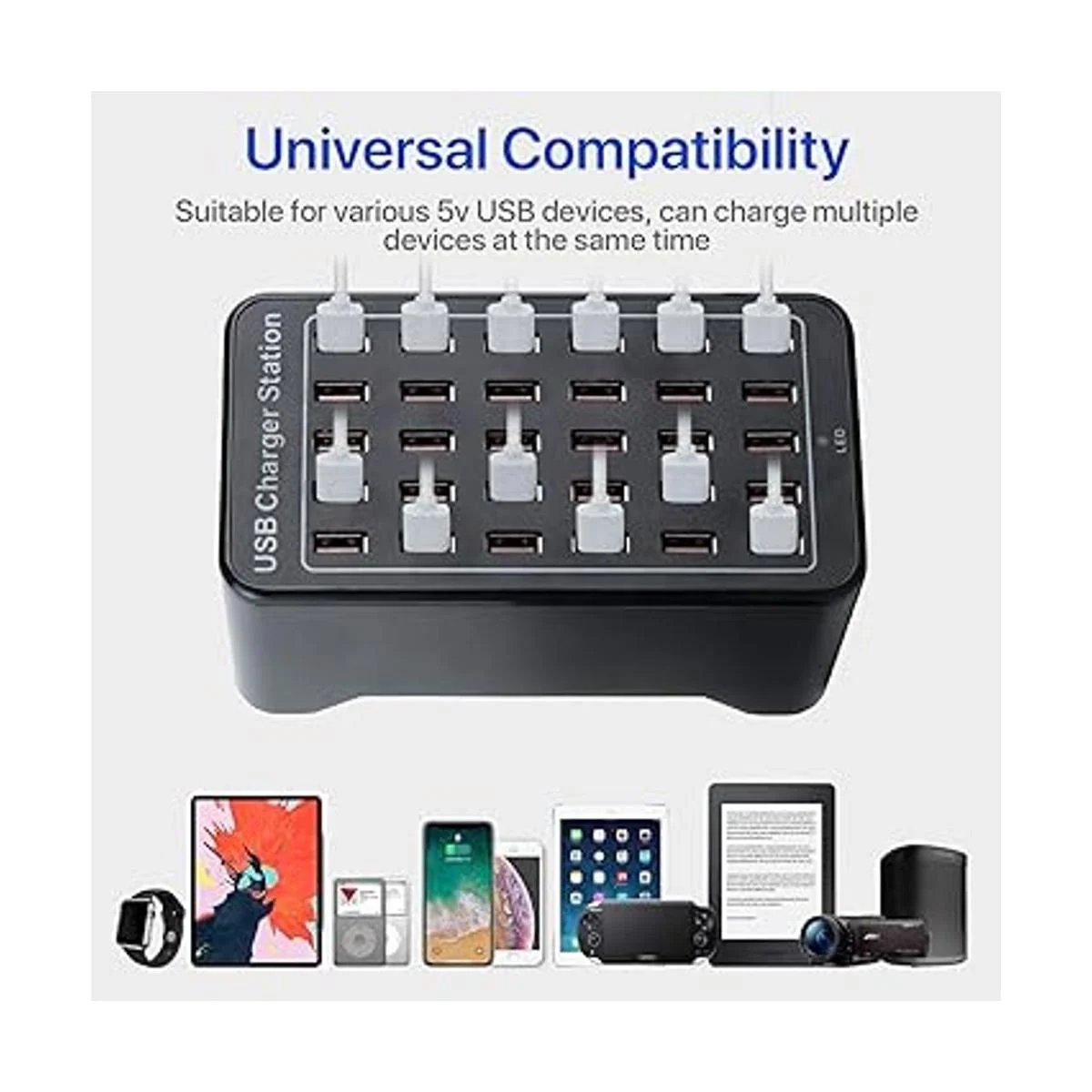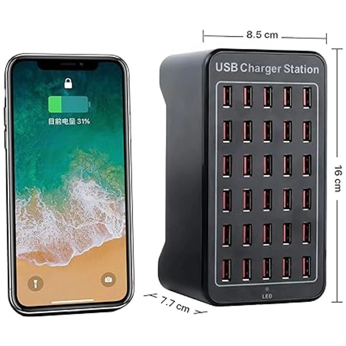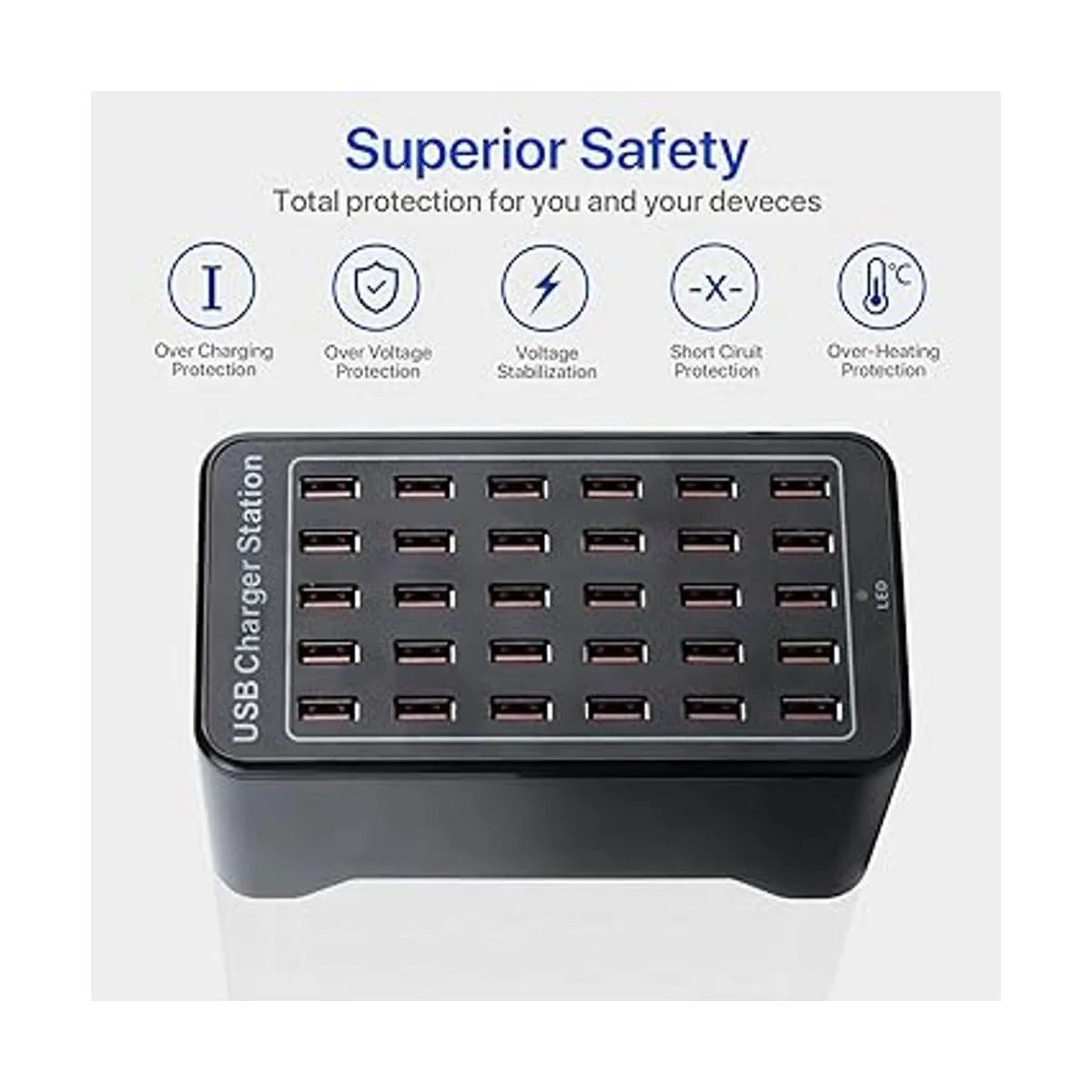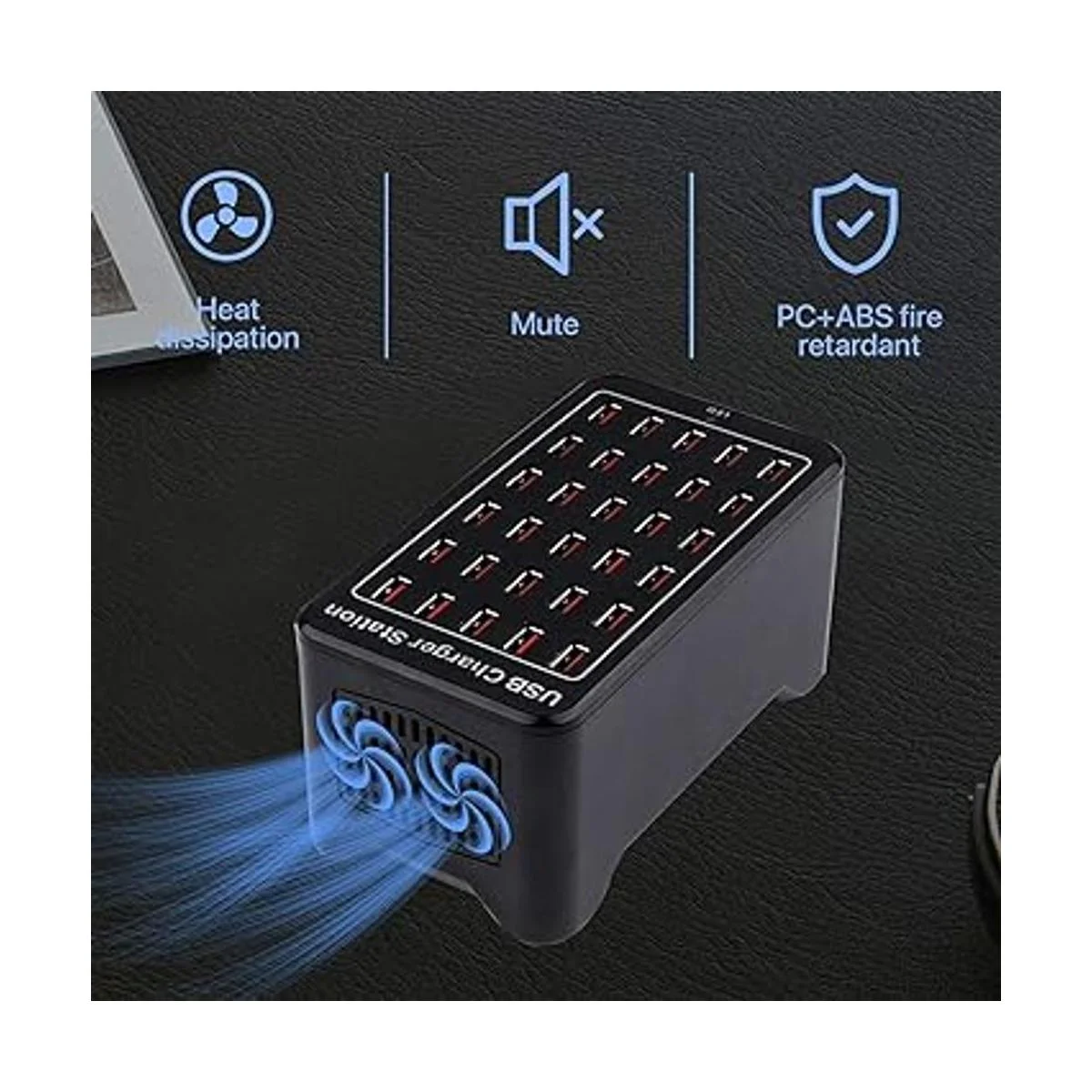 Cargador de 30 puertos, estación de carga USB, cargador rápido USB, reconocimiento de carga inteligente, adecuado para viajes, reuniones familiares, escuelas, centros comerciales, hoteles, tiendas