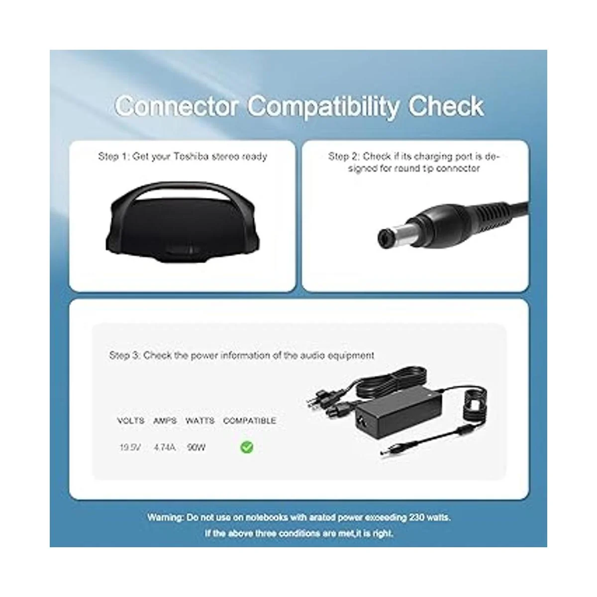 Compatible con altavoz Bluetooth inalámbrico JBL Boombox 1 2 solo para amperaje igual o inferior a 4,47 A.