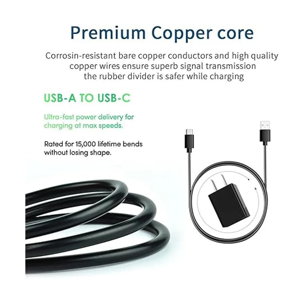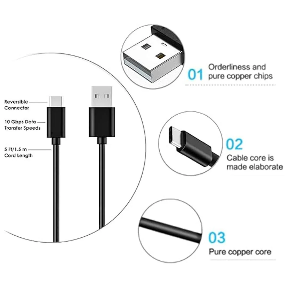 4. Cable duradero: el cable está hecho de material de PVC grueso y ha sido sometido a más de 8000 pruebas de flexión para proporcionar la mejor protección para tu cable. Corriente de 2 A, la velocidad de carga del cable es 10 50 más rápida que el cable USB ordinario.